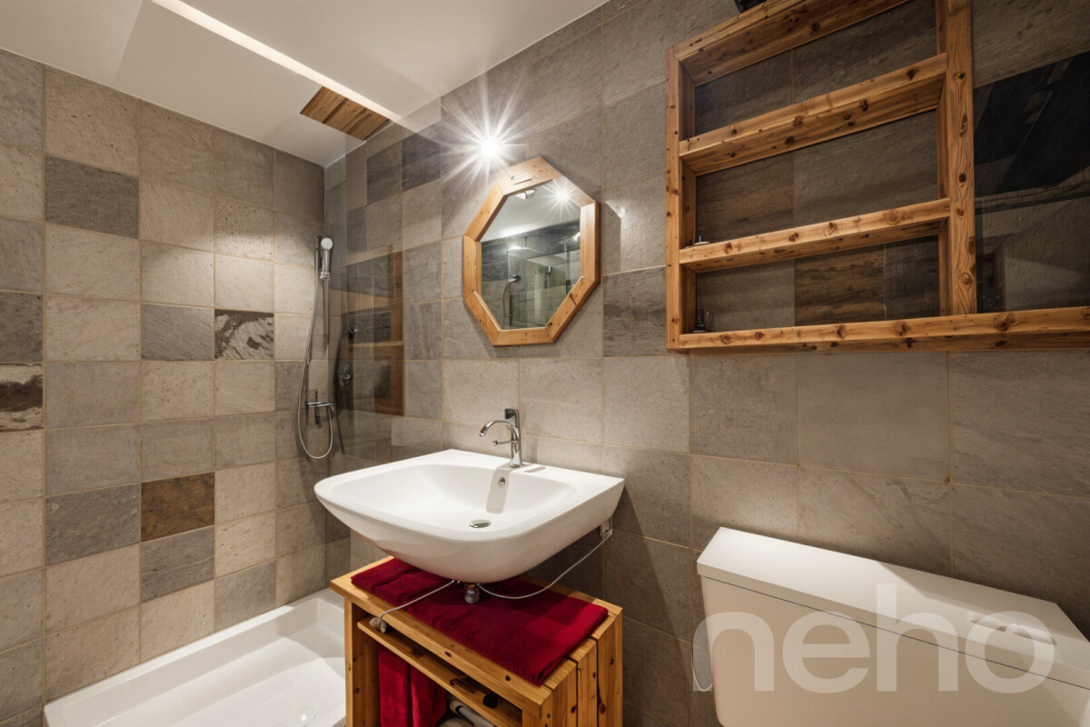 D'une surface d'environ 133 m² répartis sur trois niveaux, le chalet se distingue par une distribution harmonieuse.