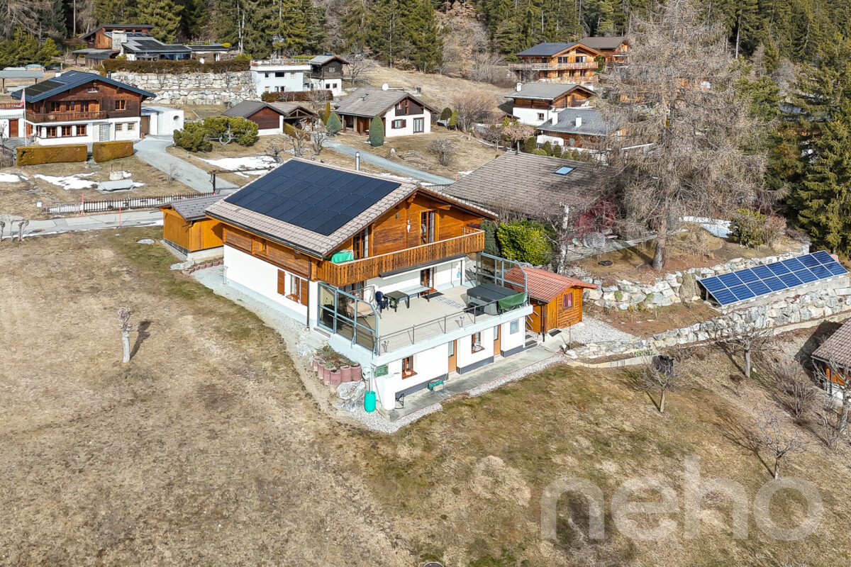 Exceptional chalet on the heights of SavièseSet in a quiet and privileged environment on the heights of Savièse, this magnificent south-facing chalet impresses with its high-quality construction, generous volumes and impeccable condition. Built in 2006 and meticulously maintained, the property is in like-new condition and may also be used as a secondary residence.With approximately 200 sqm of living space spread over three levels, the chalet offers 5.5 rooms, including four spacious bedrooms, two bathrooms and a charming carnotzet, ideal for convivial gatherings. The bright living area opens onto an elegant open-plan kitchen, featuring refined finishes with parquet flooring and tiling.The chalet sits on a 1,000 sqm plot, providing generous outdoor space and significant development potential. Parking is abundant, with multiple parking spaces, a carport, a garage and additional outdoor parking options.Modern comfort is ensured thanks to underfloor heating, double-glazed windows, solar panels and a heat pump, offering excellent energy efficiency and year-round comfort.A rare opportunity combining charm, modern amenities and strong potential, ideal as a primary or secondary residence.