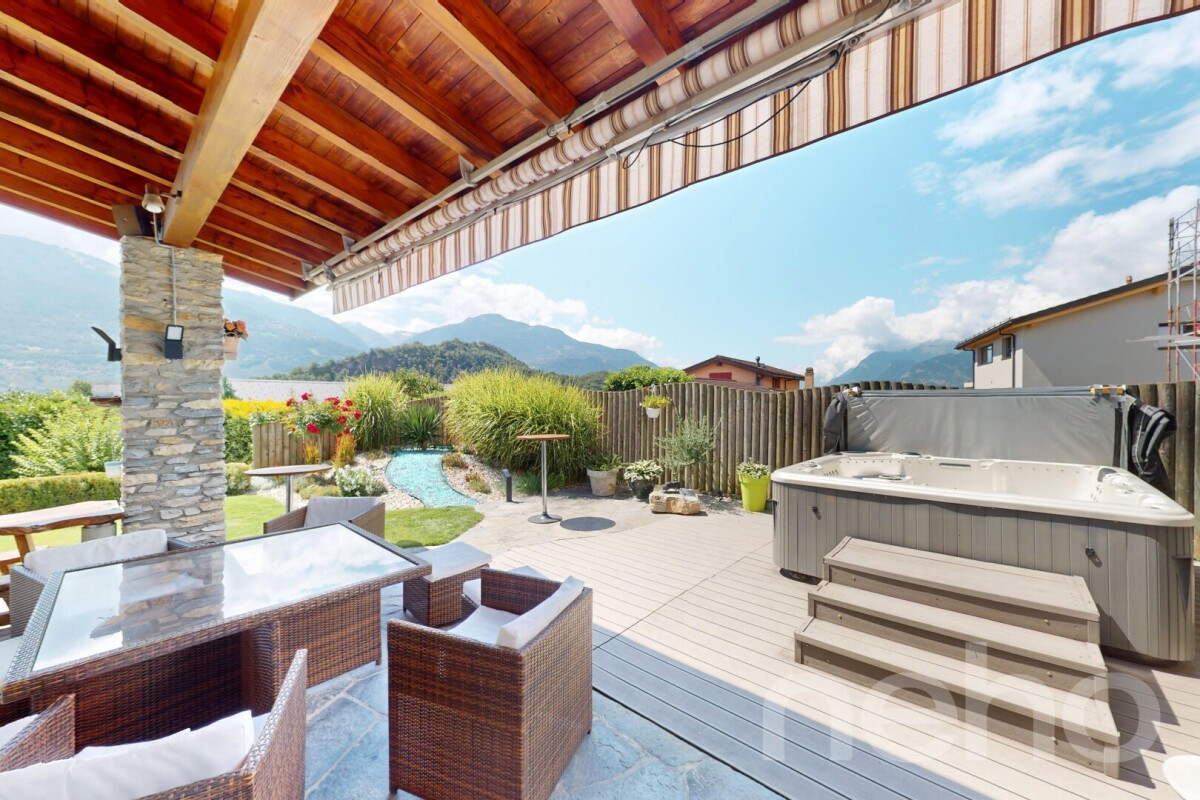 Stunning detached villa of 180 m² located in the idyllic setting of Savièse, perfect for families seeking tranquility and comfort. This fully renovated property, completed in 2014 with high-quality materials, offers 7.5 bright and well-designed rooms, including 3 bathrooms, some with windows. The 120 m² sunlit terrace is ideal for relaxing while enjoying breathtaking mountain views. Nestled in a peaceful and sunny environment, the house benefits from excellent natural light and guarantees an exceptional quality of life. A detached garage complements this rare property, ready to welcome you immediately. Enjoy a modern and cozy space, thoughtfully designed for well-being and serenity, with every detail reflecting the care taken during the renovation. Don't miss this unique opportunity?contact us today for more information or to arrange a visit to this real estate gem.
