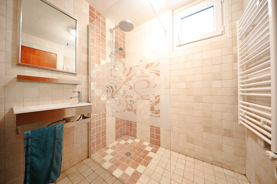 1er étage: vestibule, salle de bains (toilettes, douche), séjour avec cuisine