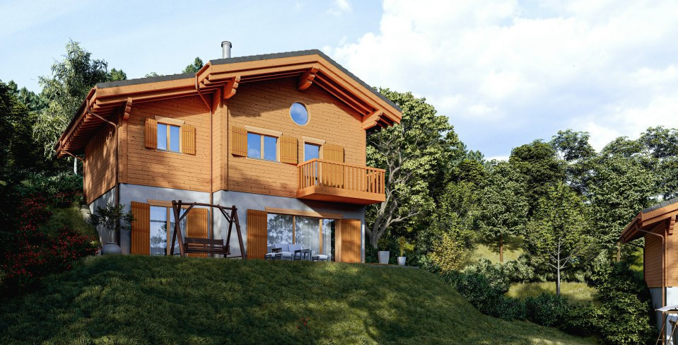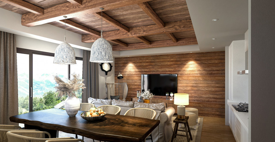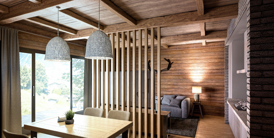 Composé de bois et de béton brut, l'architecture de ce chalet saura faire écho à la nature qui l'entoure.