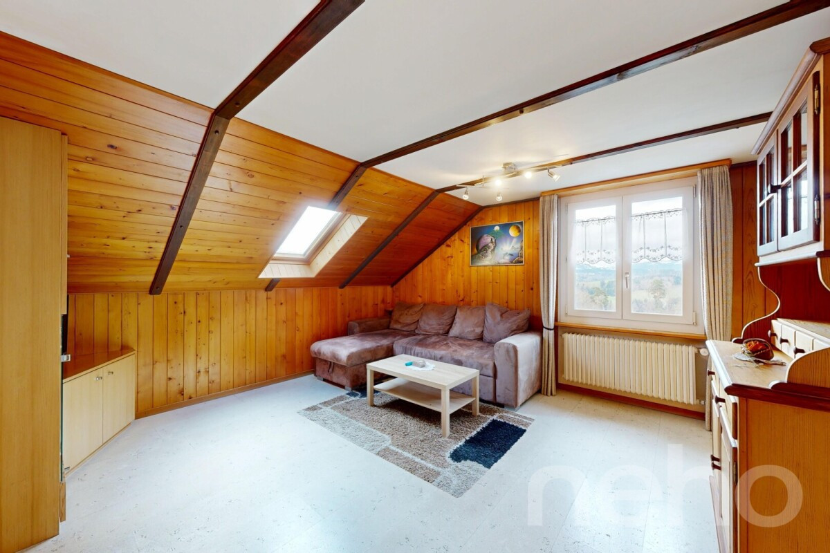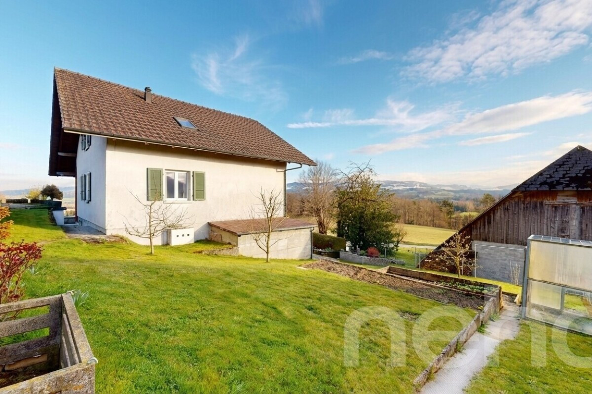 An ruhiger und ländlicher Lage mit wunderschöner Aussicht präsentiert sich dieses charmante Einfamilienhaus aus dem Jahr 1963 mit insgesamt 6 Zimmern. Das Grundstück umfasst 521 m² und befindet sich in der Landwirtschaftszone, was die naturnahe Umgebung und den freien Blick ins Grüne besonders hervorhebt. Ein Ort, der Ruhe und Lebensqualität in vertrauter Umgebung bietet.