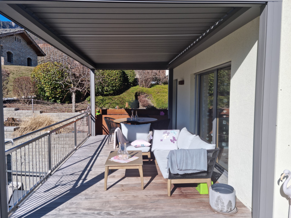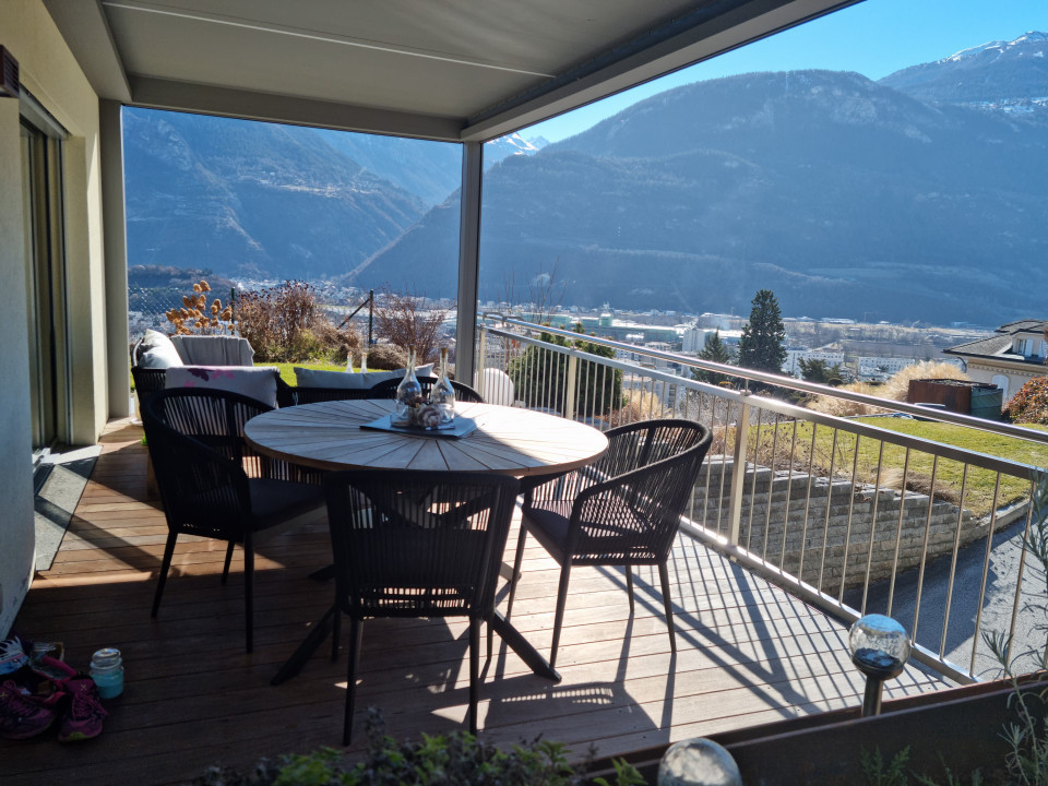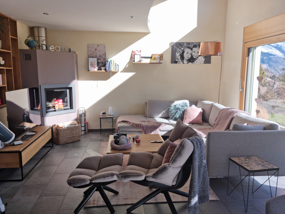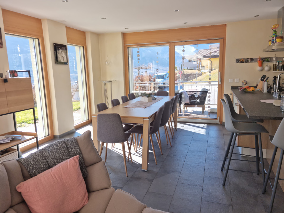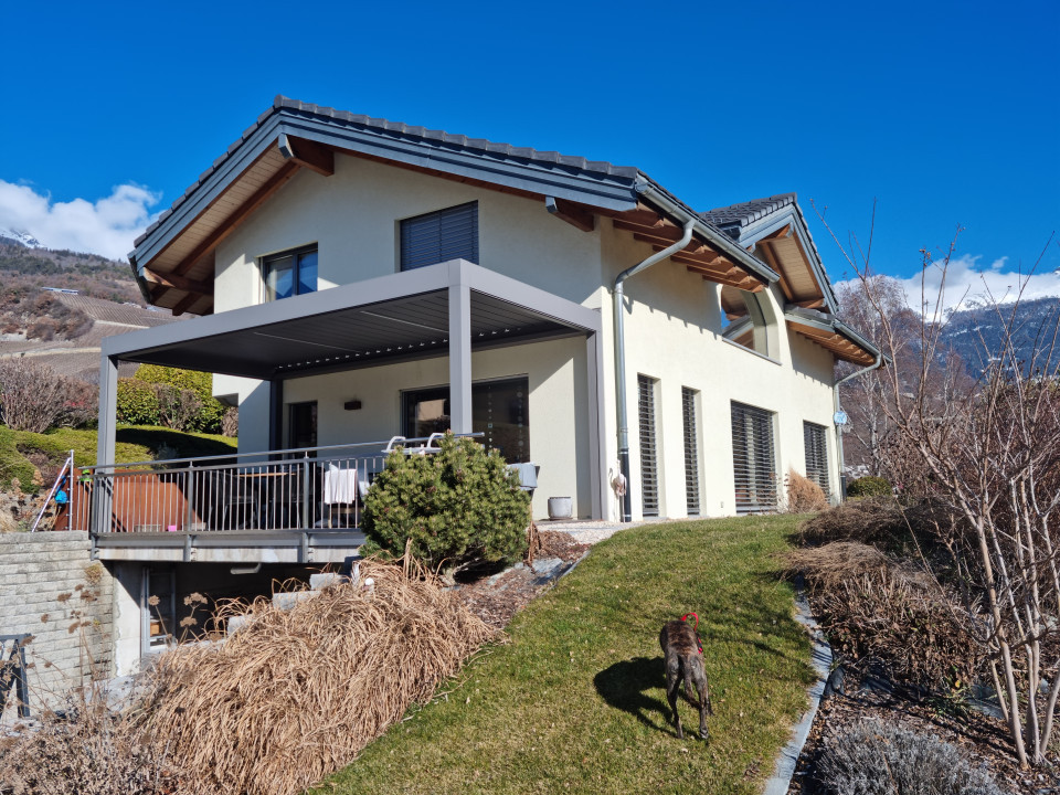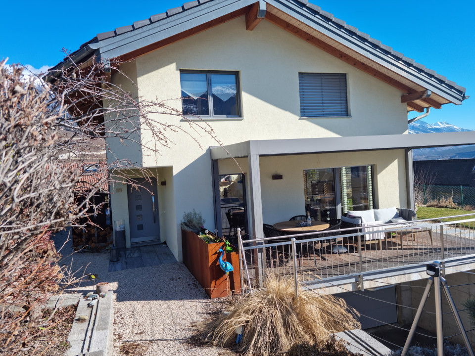 Cette éclatante villa d'architecte est idéalement située sur un lieu dit familièrement nommé " le balcon de Sierre". Adroitement conçue, elle bénéficie de nombreux extérieurs en terrasse, orienté Sud, avec une cuisine d'été, Pergola, autorisation en force pour un jacuzzi, arrosage automatique du jardin arboré et du potager .