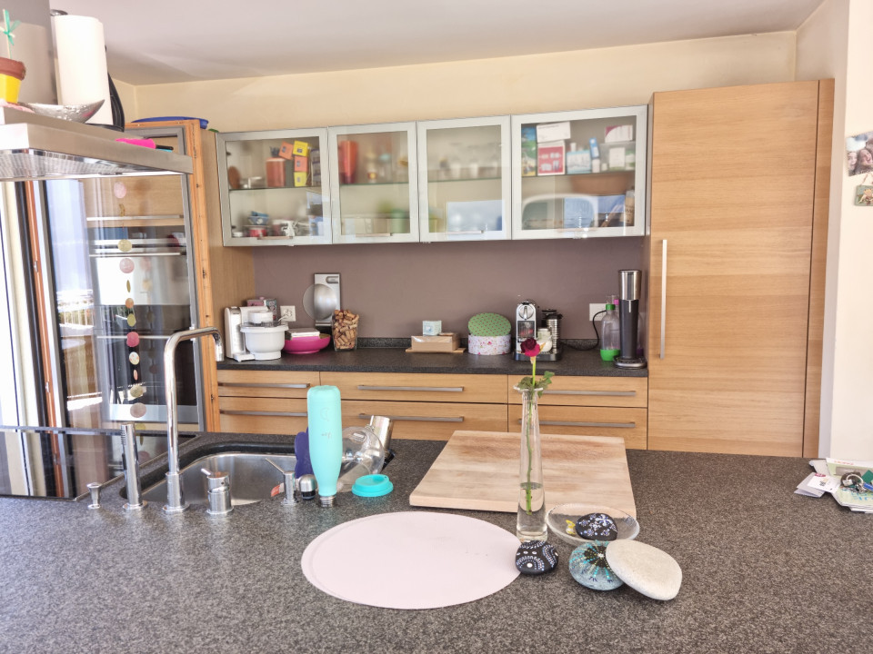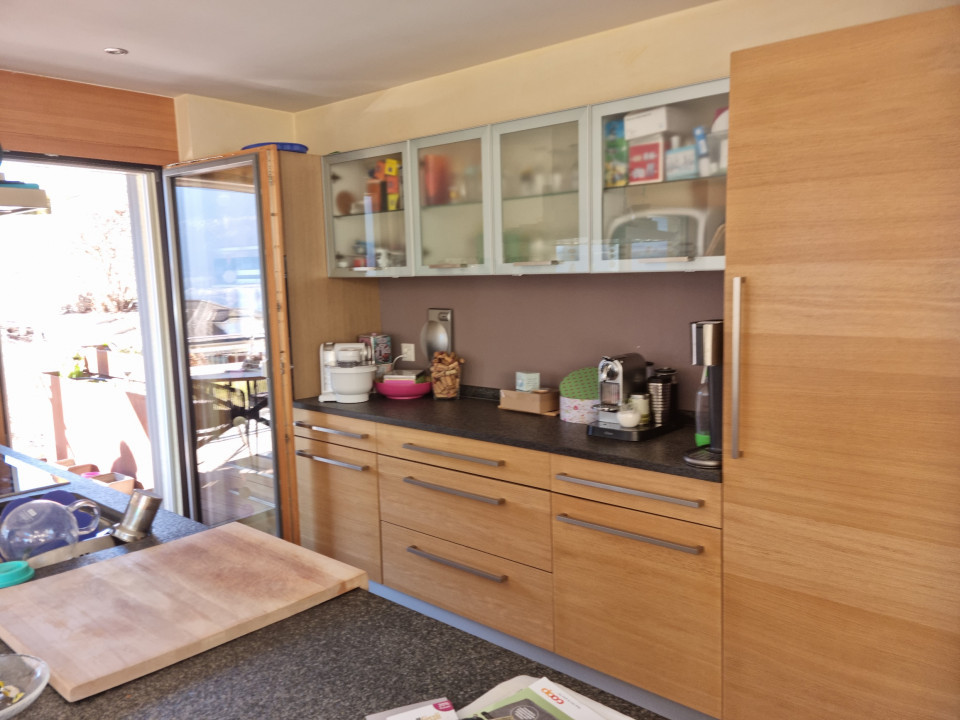 .- Cuisine ouverte sur la pièce à vivre de plein pied avec une terrasse.