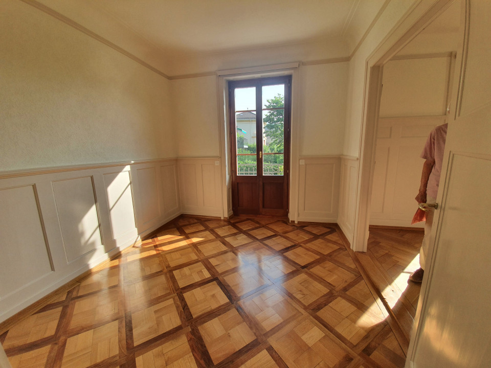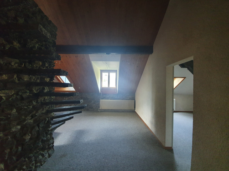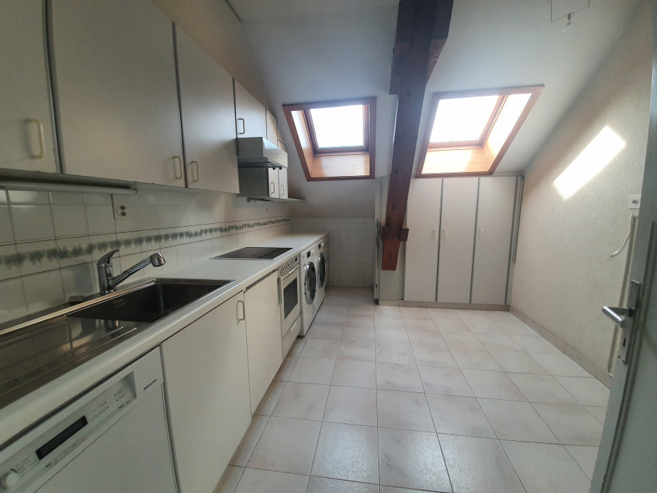 .- Un appartement sous les combles de 150 m2 de 4 pièces, hauteur sous plafond identique pour les chambres et de 4.5m pour le salon à son point culminant.