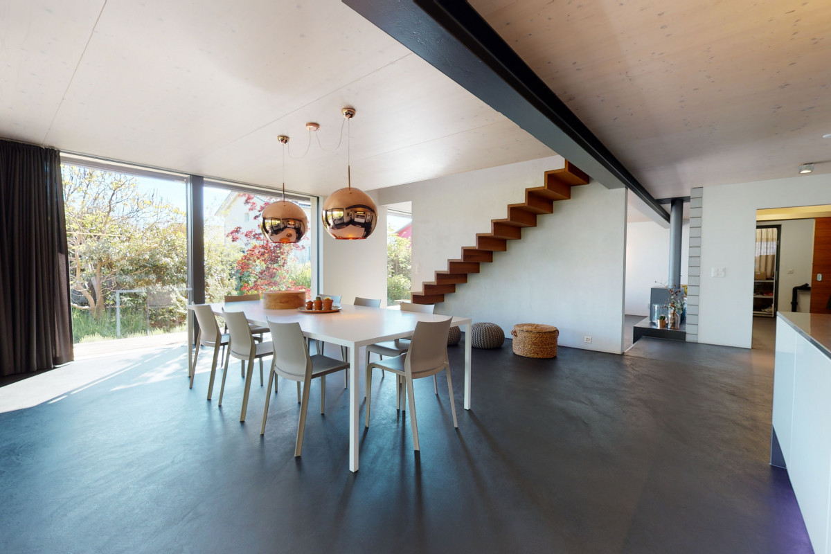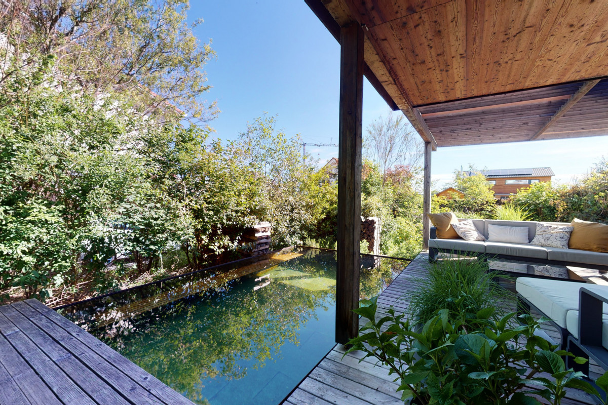 Dieses spannende Haus lässt nicht viele Wünsche offen. Es bietet einen stilvollen und grosszügigen Grundriss an. Die Planung verleiht dem Haus ein luftiges Ambiente und viel Lebensqualität. Das Haus wurde ständig gut unterhalten und gepflegt. Der Aussenbereich macht die Liegenschaft noch interessanter. Er bietet viele Möglichkeiten und viel Entspannung. Der grossartige Naturpool verleiht dem Haus eine herrliche Ferienstimmung.