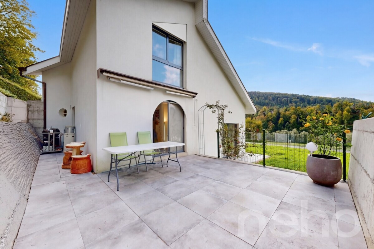 Maison familiale lumineuse avec vue dégagéeNichée dans un quartier résidentiel calme et en hauteur, cette agréable maison mitoyenne construite en 1980 séduit par son cadre paisible, sa belle luminosité et ses volumes généreux, le tout sur une parcelle de 380 m².Répartie sur trois niveaux, elle offre 6.5 pièces, dont 5 chambres, parfaitement adaptées à une vie de famille. Le séjour avec...