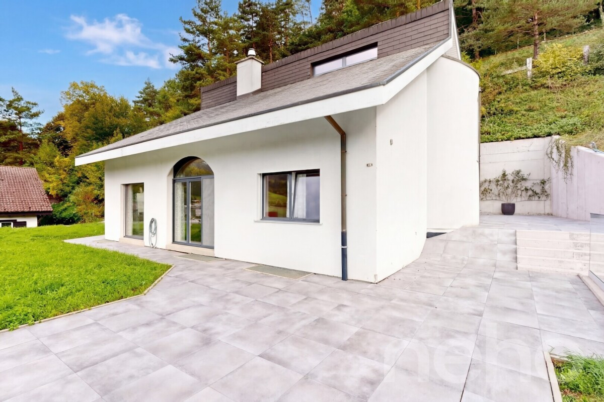 Découvrez votre nouveau paradis familial dans ce cadre paisible, entouré d'un paysage montagneux à couper le souffle. Cette charmante maison offre un environnement idéal pour les familles qui apprécient le calme et la nature. Grâce à son garage indépendant, votre véhicule sera toujours en sécurité.La maison s'étend sur trois niveaux et offre une surface habitable généreuse de 144 m² sur un vaste terrain de 861 m². L'orientation sud garantit des pièces baignées de lumière, tandis que la vue dégagée sur les montagnes procure une sensation d'espace et de liberté.Avec un total de 5,5 pièces, dont quatre chambres, deux salles de bains et des toilettes pour invités, cette maison offre suffisamment d'espace pour votre famille. Chaque pièce est conçue pour allier confort et fonctionnalité.On accède à la maison par un long escalier extérieur.Faites le premier pas vers la maison de vos rêves dans cet environnement unique. Contactez-nous dès aujourd'hui pour convenir d'un rendez-vous de visite et laissez-vous envoûter par l'atmosphère particulière de cette maison.