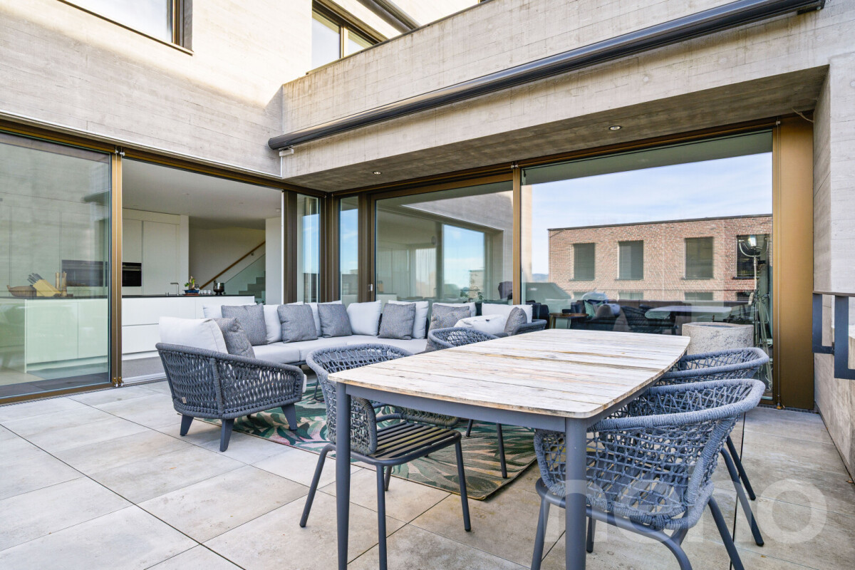 Drei Terrassen mit einer Gesamtfläche von 121 Quadratmeter fügen sich harmonisch in das architektonische Gesamtbild ein und bieten dank der erhöhten Hanglage wunderbare Ausblicke über die Dächer von 9014 St. Gallen.