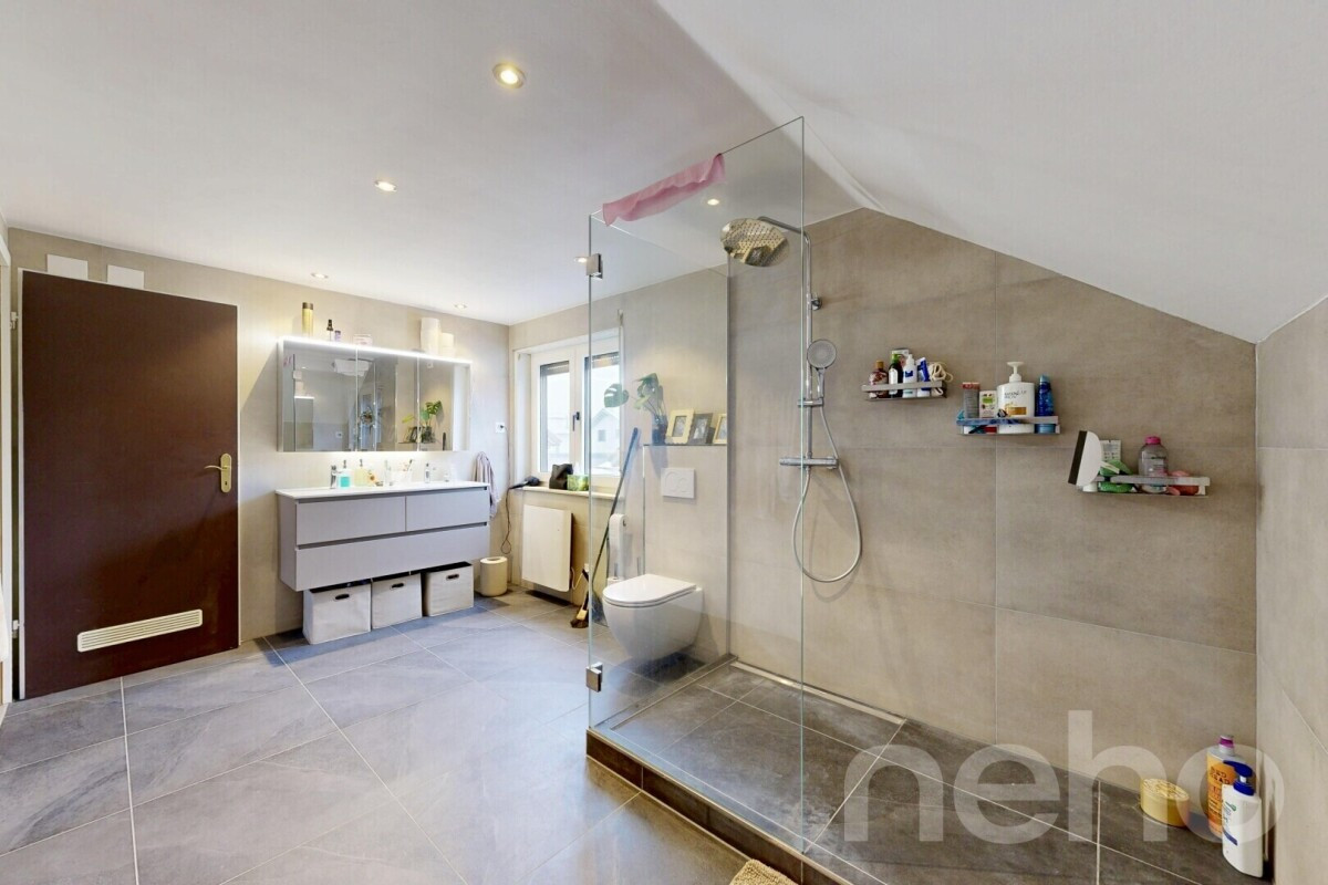 Un niveau supplémentaire dévoile un grand galetas, offrant un potentiel d'aménagement intéressant selon vos envies : bureau, espace loisirs ou pièce supplémentaire. Extérieurs soignés et stationnement généreuxÀ l'extérieur, la terrasse partiellement couverte invite à profiter du jardin en toute saison. Des espaces de rangement pratiques complètent l'ensemble : cabanon de jardin avec bûcher, réduit/cave/atelier accessible depuis la terrasse, parfaits pour le stockage.Côté stationnement, la maison se démarque clairement : un garage double, un garage supplémentaire, ainsi que plusieurs places extérieures permettent d'accueillir famille et visiteurs sans contrainte. Pourquoi ce bien est une vraie opportunitéCette villa construite en 1986 et rénovée en 2012 offre un équilibre rare entre cadre de vie paisible, volumes familiaux et potentiel d'évolution. Son emplacement, son jardin intime, sa luminosité et ses possibilités d'aménagement en font un bien recherché, idéal pour une famille souhaitant s'installer durablement tout en personnalisant son futur lieu de vie.Une opportunité à ne pas laisser passer dans un secteur où les biens de ce type se font rares. Envie d'en savoir plus ?Contactez Neho dès maintenant pour organiser une visite et découvrir tout le potentiel de cette villa.