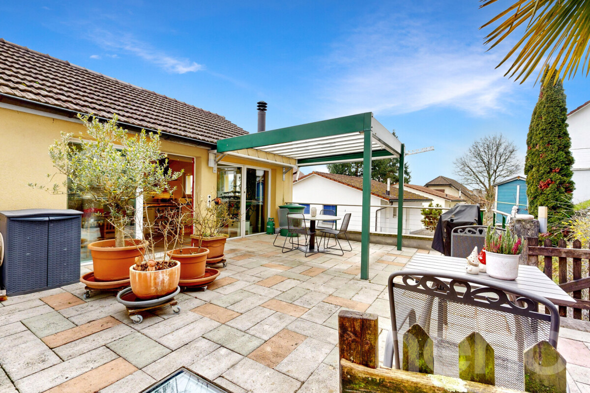Von hier aus gelangen Sie auf die weitläufige Terrasse sowie in den Garten in Hanglage ? mit traumhafter Aussicht bis zum Schloss Lenzburg.