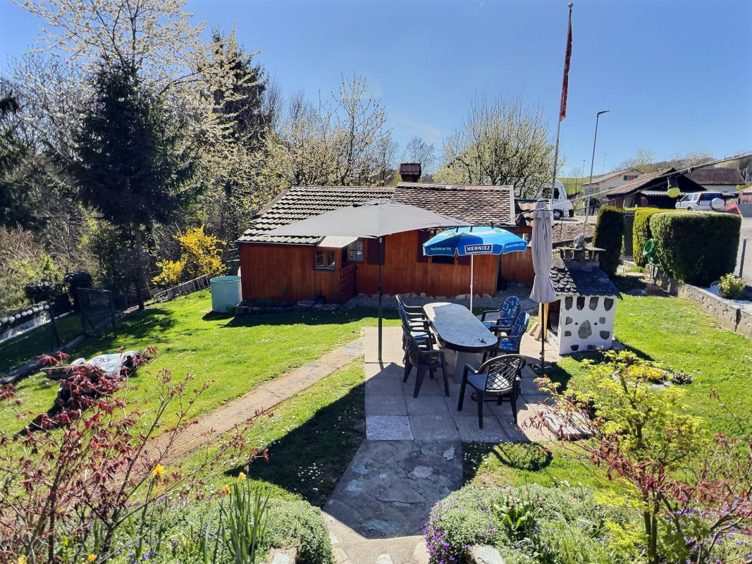 Implantée sur deux grands terrains pour un total de 2'674 m², la propriété bénéficie d'un magnifique jardin clôturé, arboré et agrémenté d'une rivière, idéal pour les amoureux de nature et de tranquillité. Il dispose d'un grand cabanon tout confort équipé d'une cuisine avec l'eau courante et l'électricité. Un four à pizza et une terrasse vous permettrons de profiter de ce bel espace bucolique.
