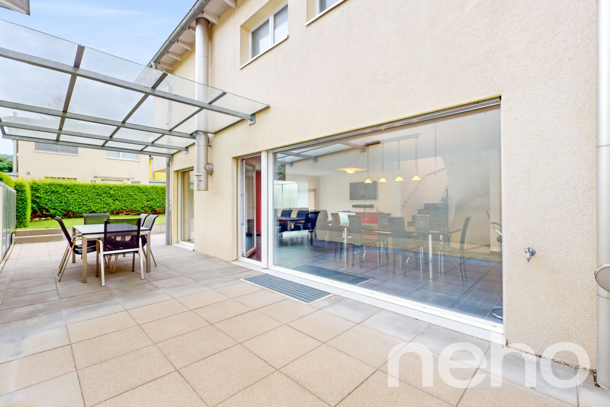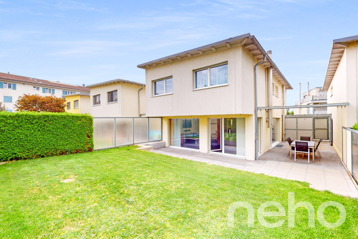 Moderne Doppelhaushälfte mit grossem UmschwungIn einer ruhigen Sackgasse gelegen, überzeugt diese charmante Doppelhaushälfte durch ihre sonnige Lage, nur wenige Minuten vom Autobahnanschluss entfernt und direkt neben einem Naherholungsgebiet. Die Aare ist bequem zu Fuss erreichbar. Das grosszügige Grundstück mit gepflegter Gartenanlage lädt zum Entspannen und Geniessen ein.Helle, grosszügige...