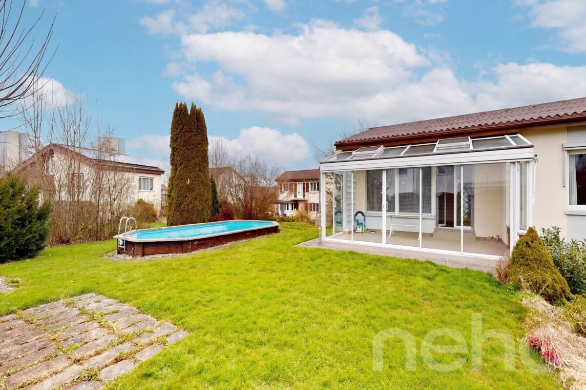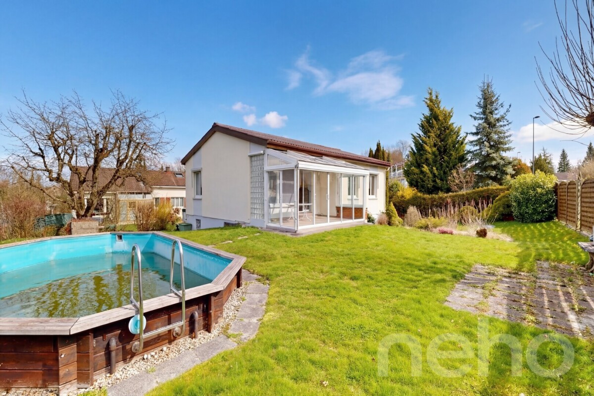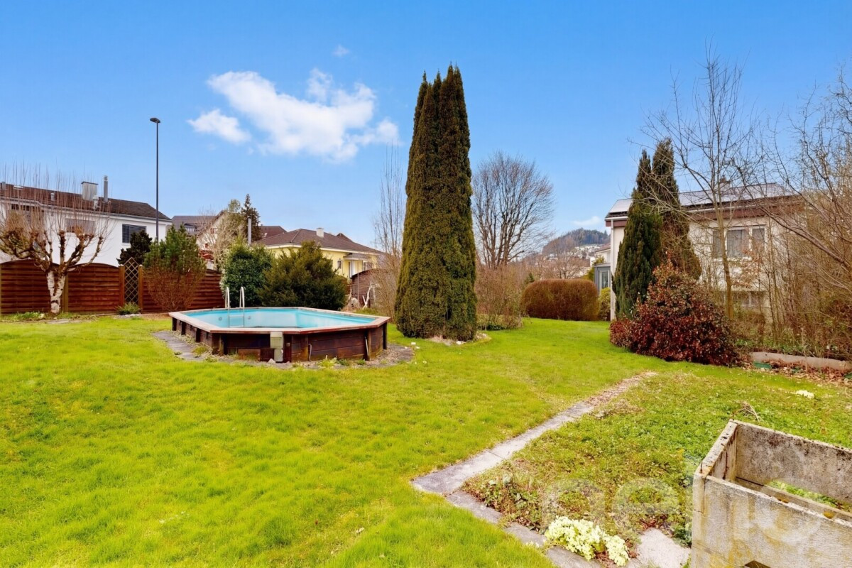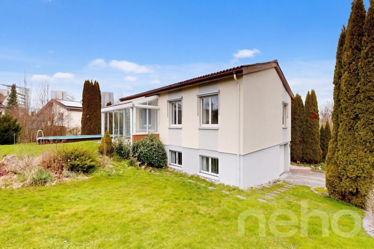 Entdecken Sie Ihr neues Zuhause mit einer exzellenten Ausrichtung nach Südwesten, ideal für Familien und in unmittelbarer Nähe zu allen Annehmlichkeiten. Auf einem grosszügigen Grundstück von 823 m² gelegen, beeindruckt es mit einem sonnigen Garten, einem Aussenpool und einem Wintergarten, der den Wohnraum erweitert. Das 1970 erbaute Haus verfügt über zwei Ebenen. Im Eingangsbereich erwarten Sie drei Schlafzimmer, ein Wohnzimmer, ein Esszimmer sowie eine separate Küche und eine Nasszelle. Im Untergeschoss befindet sich ein weiteres Zimmer, ein beheizter Hobbyraum, eine separate Toilette, der Technikraum und ein Luftschutzkeller. Der direkte Zugang zur Garage ist ebenfalls vorhanden. Vor dem Haus stehen Ihnen zwei Aussenstellplätze zur Verfügung. Das Grundstück liegt in einem ruhigen und familienfreundlichen Quartier, das dennoch zentrumsnah und gut erschlossen ist.Erleben Sie die Vorzüge dieses charmanten Zuhauses selbst ? kontaktieren Sie uns noch heute, um einen Besichtigungstermin zu vereinbaren!