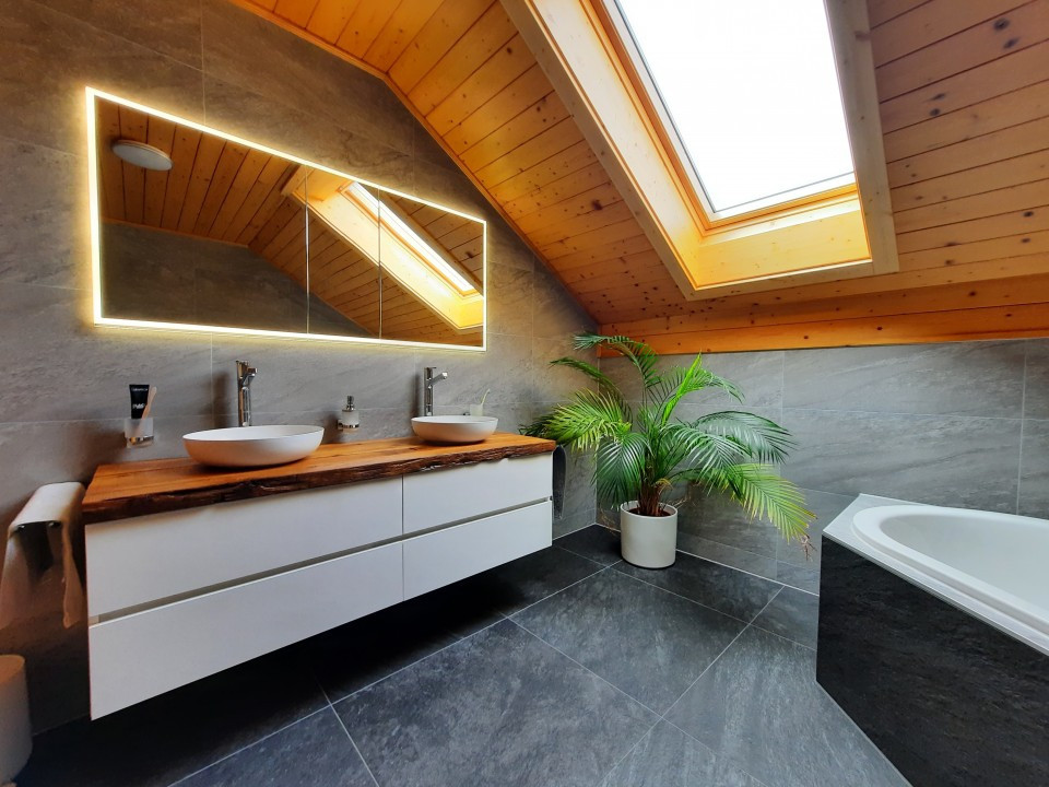 - 1 salle de bain avec double lavabo - baignoire - WC