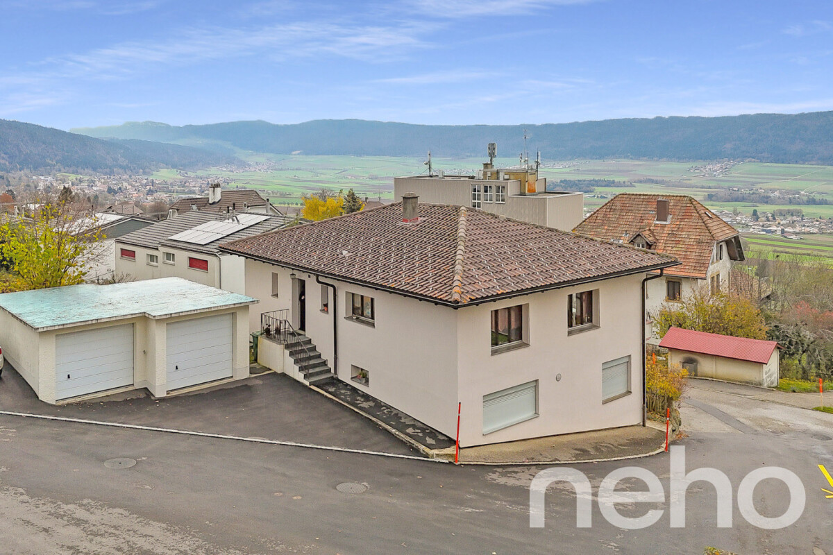 Charmante & spacieuse villa avec beau jardin à 20 minutes de NeuchâtelSituée dans un environnement verdoyant et jouissant d'une parfaite exposisition, cette magnifique villa bénéficie d'une jolie vue sur la campagne environnante et la forêt. Le vaste séjour avec cheminée, le jardin avec gril, potager et 2 terrasses, le potentiel d'aménagement de la grande pièce du rez-de-chaussée (ancien...