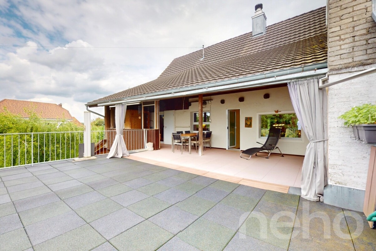 Belle maison familiale de 6.5p avec jardin et magnifique vue!Découvrez cette belle maison de 167m2 habitables offrant une vue panoramique dégagée, idéale pour les familles à la recherche d'un cadre de vie paisible et ensoleillé. Nichée dans un environnement calme, cette propriété présente un potentiel remarquable grâce à son optimisation efficace de l'espace.La maison s'étend sur deux...