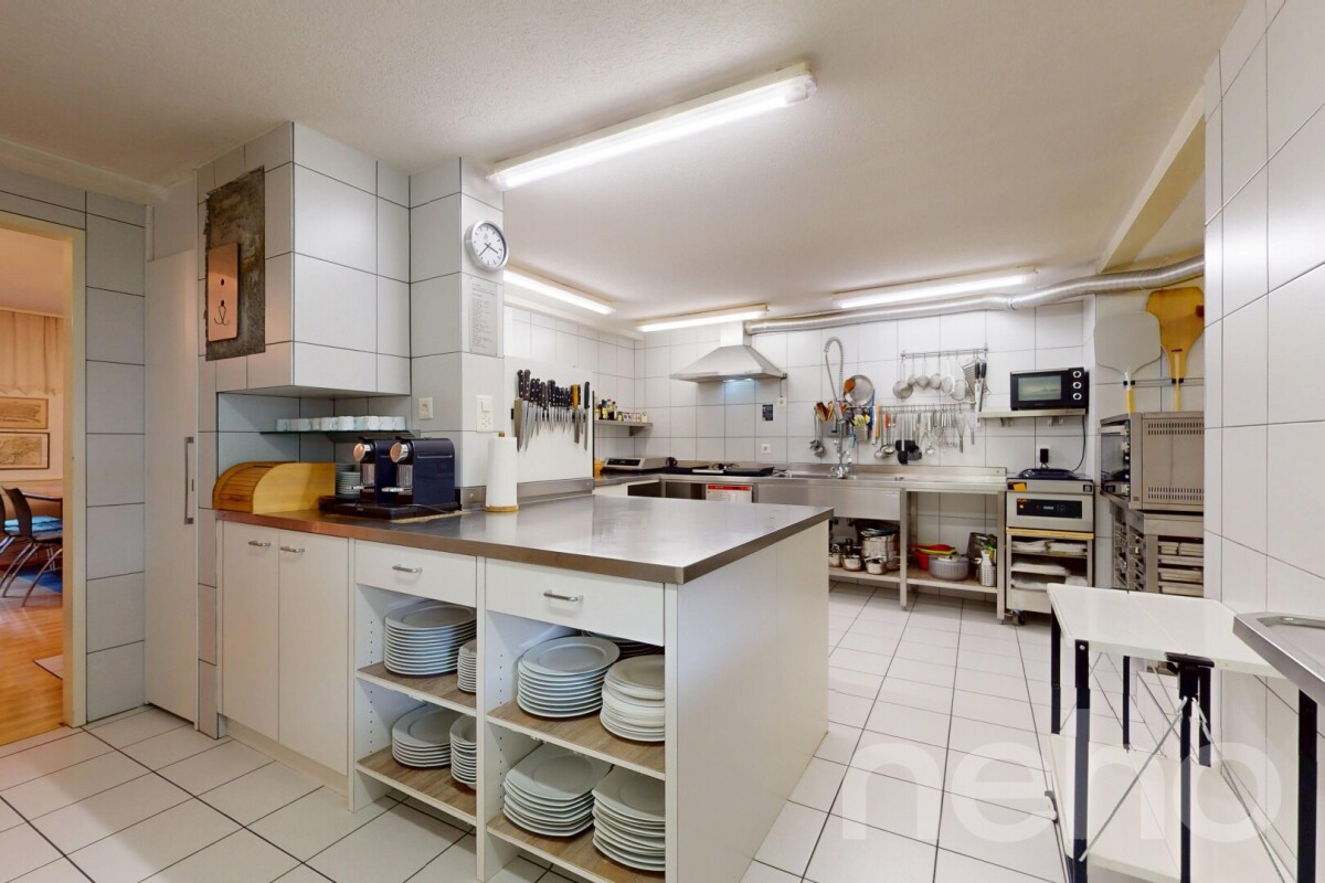 À remettre pour cause de nouveau projet:Hôtel & Restaurant/Pizzeria en activité avec chiffre d'affaire et clientèle fidèle, stable et régulière.Récemment rénové, cet objet contient 4 chambres double et un appartement de fonction de 3.5 pièces neuf avec terrasse indépendante à l'établissement.Nombreuses places de parc et terrasse extérieure côté ouest. Accès par l'arrière du bâtiment...