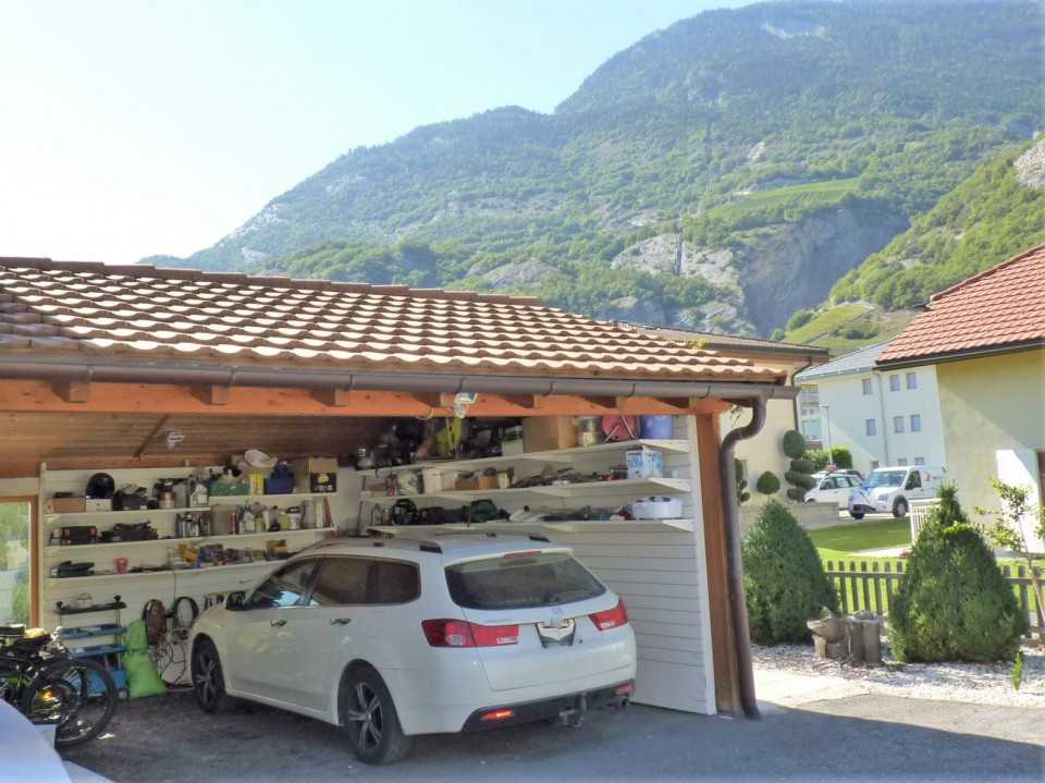 Couvert voiture, local jardin + véranda avec poêle suédois et terrasse.