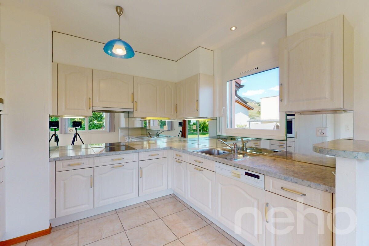 For sale: a beautiful detached house offering 156 m² of living space across 5,5 rooms ? ideal for a family seeking comfort and tranquility. Located in a peaceful, sunny, and green setting, the property includes two bathrooms, a private garden, and a lovely 26 m² terrace perfect for outdoor dining or relaxing. In good overall condition, this home stands out for its brightness and stunning mountain views. The interior layout is flexible and can easily accommodate family life or remote work. Available immediately, it's a rare opportunity on the market.