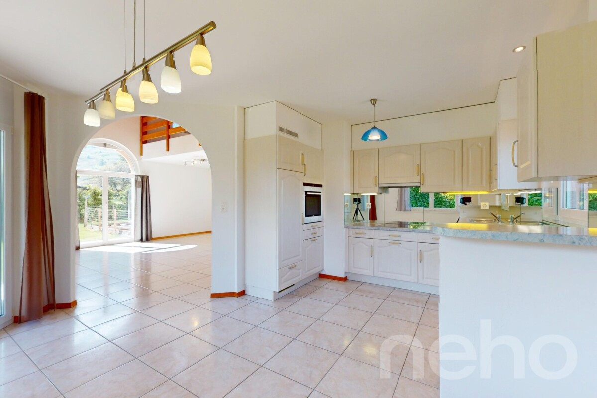 Nichée dans un environnement calme, ensoleillé et verdoyant, cette propriété profite d'une situation privilégiée offrant intimité et qualité de vie. Ses généreuses surfaces lumineuses sont mises en valeur par de grandes baies vitrées ouvrant sur un panorama exceptionnel, avec une vue imprenable sur les montagnes.