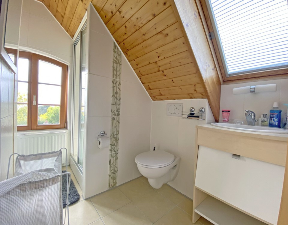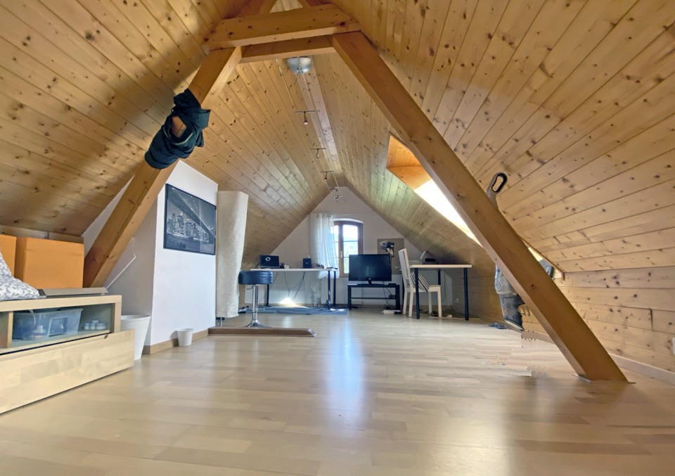 Au 2ème étage, un appartement de 3,5 pièces avec accès aux combles comportant une belle pièce et une salle de douche/WC, est habitable de suite en l'état.