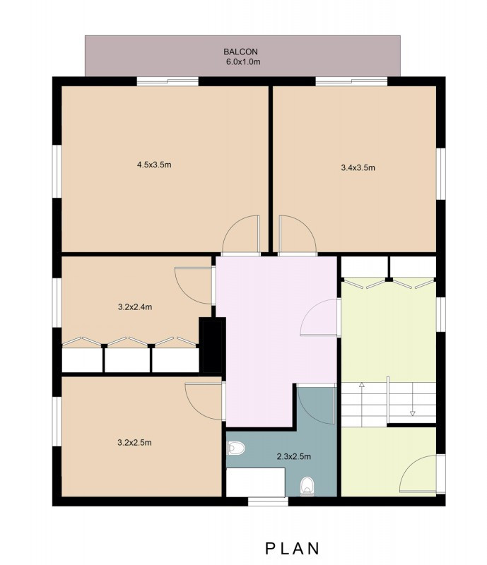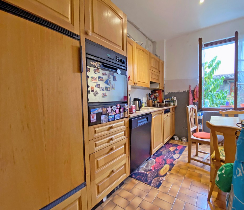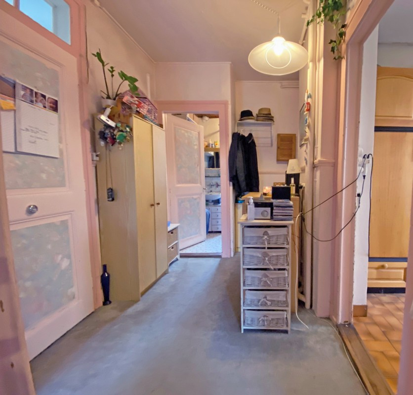 Au 1er étage se trouve un appartement de 3,5 pièces avec balcon, c'est appartement est à rénover entièrement et n'a pas de cuisine (uniquement les arrivées)
