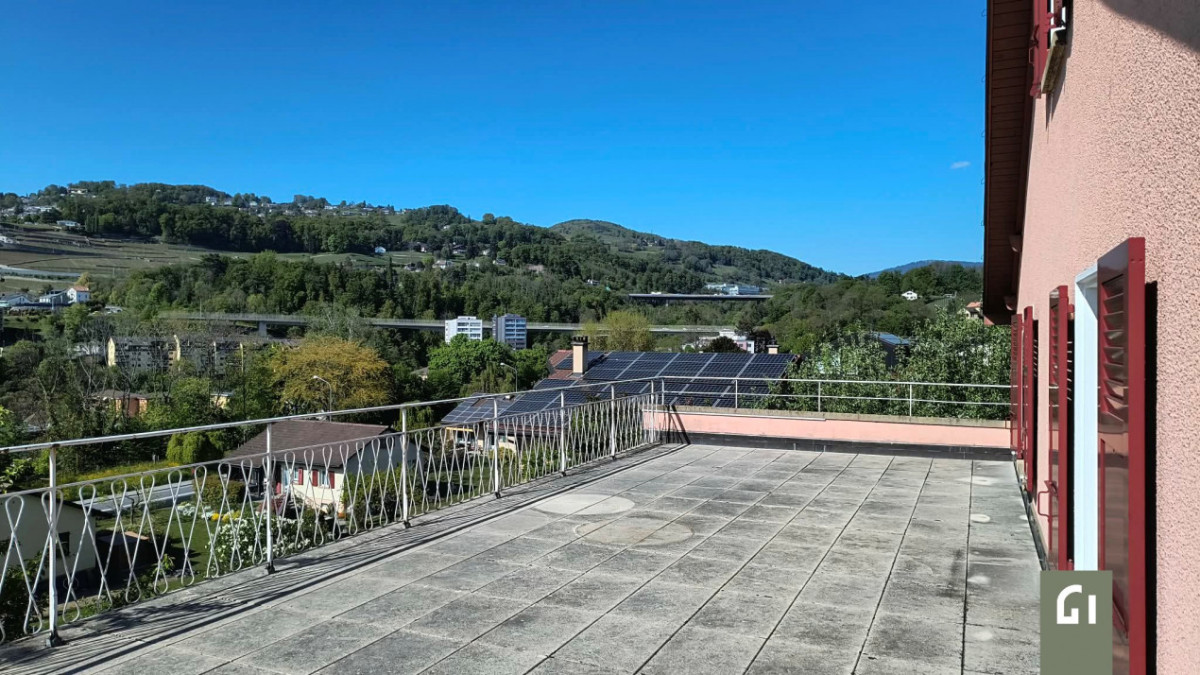 Les extérieurs séduisent par un grand jardin surplombé par une spacieuse terrasse, idéale pour profiter pleinement des beaux jours, le tout bénéficiant d’une belle vue dégagée.