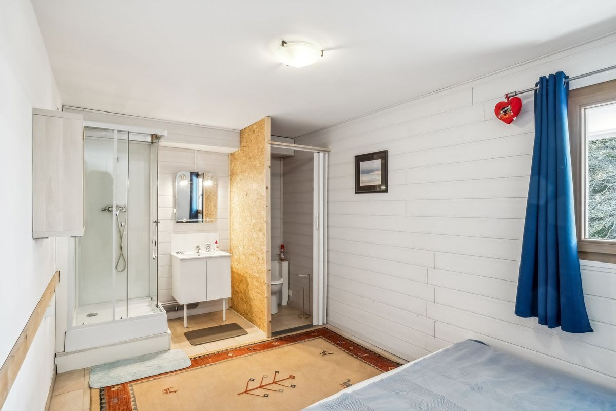 Chalet individuel de 5,5 pièces situé dans un environnement calme et privilégié, en lisière de forêt, ce chalet individuel offre une surface habitable d'environ 165 m² répartie sur trois niveaux. Entièrement rénovée en 2013, la propriété allie charme alpin et confort moderne grâce à ses poutres apparentes, ses volumes généreux, ses espaces extérieurs soignés ainsi que ses équipements énergétiques performants, comprenant une pompe à chaleur et des panneaux photovoltaïques.