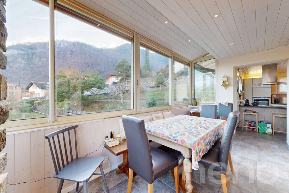 Nichée en position dominante, cette charmante villa individuelle séduit d'emblée par son cadre privilégié et sa vue dégagée sur les Alpes, véritable tableau vivant au fil des saisons. Implantée sur une magnifique parcelle de 1'428 m², elle offre un environnement verdoyant, intime et résolument paisible, idéal pour les amoureux de calme et d'espace.Érigée sur deux niveaux, la maison se distingue par une distribution fonctionnelle et agréable. Les espaces de vie bénéficient d'une belle luminosité et s'ouvrent sur une véranda chauffée, parfaite pour prolonger les moments de détente tout au long de l'année. Un sauna vient compléter cet espace bien-être, invitant à la relaxation dans le confort de son propre foyer.La villa est en bon état d'entretien et propose de nombreux atouts complémentaires : un grand atelier ou pièce de loisirs au rez inférieur, idéal pour les activités créatives, le bricolage ou un espace hobby, ainsi qu'un vaste grenier isolé et aménagé, offrant un potentiel supplémentaire selon les besoins.À l'extérieur, le vaste terrain promet de belles possibilités d'aménagement et d'usages, entretenu avec soin et facilité grâce à une tondeuse robot. Une propriété rare, alliant sérénité, volumes et potentiel, dans un cadre naturel privilégié tout en restant proche des commodités.