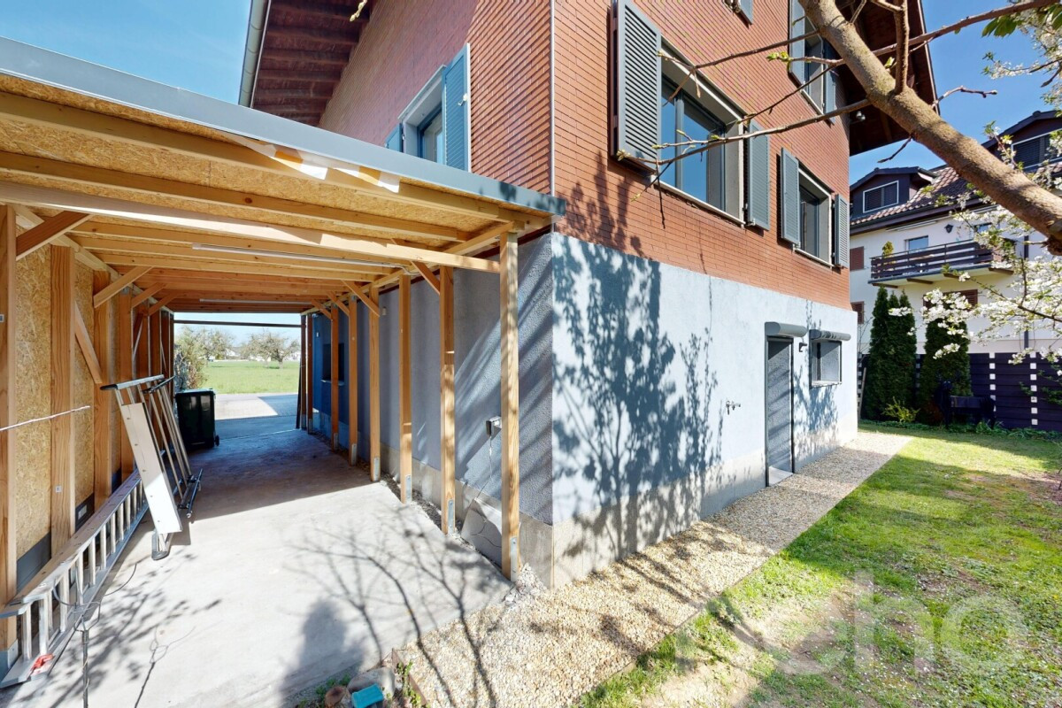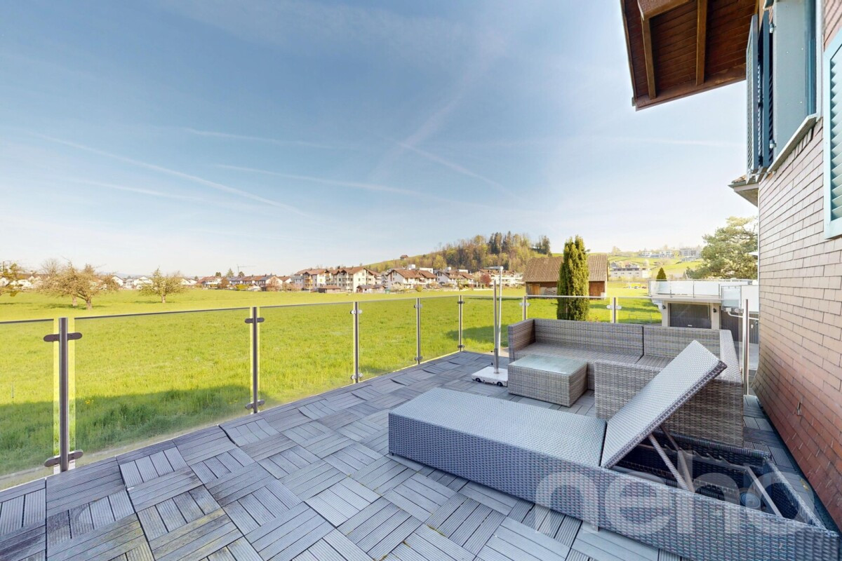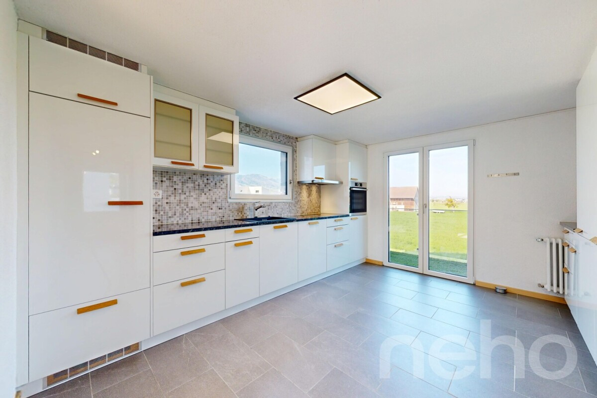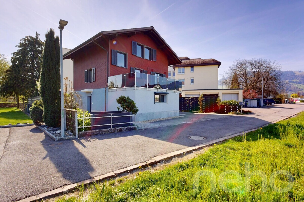 In ruhiger und attraktiver Lage von Wangen SZ präsentiert sich dieses freistehende Einfamilienhaus als echtes Wohnhighlight. Die im Jahr 2020 umfassend sanierte Liegenschaft überzeugt durch ihren hervorragenden Zustand, grosszügige Platzverhältnisse und eine traumhafte, unverbaubare Aussicht direkt angrenzend an die Landwirtschaftszone.Die Wohnfläche erstreckt sich über drei Etagen und bietet ein durchdachtes Raumkonzept mit vielseitigen Nutzungsmöglichkeiten. Helle, freundliche Räume und hochwertige Materialien schaffen ein modernes und zugleich behagliches Wohnambiente.Ein besonderes Highlight ist der private Saunabereich im Erdgeschoss, der für entspannte Wellnessmomente im eigenen Zuhause sorgt. Die zwei stilvoll ausgebauten Badezimmer mit grossen Fenstern bieten nicht nur hohen Komfort, sondern auch viel Tageslicht und eine angenehme Atmosphäre. Im Obergeschoss befindet sich zudem eine Panoramadusche, die mit herrlicher Aussicht ein einzigartiges Duscherlebnis bietet. Der zusätzliche Raum, welcher als Wintergarten oder Hobbyraum genutzt werden kann, erweitert den Wohnbereich ideal und schafft weitere Möglichkeiten für individuelle Bedürfnisse - sei es als Rückzugsort, Atelier oder Fitnessraum.Das gepflegte Grundstück rundet das Gesamtbild perfekt ab und bietet ausreichend Platz für Erholung im Freien. Mehrere Autoabstellmöglichkeiten sowie ein praktischer Carport sorgen für hohen Alltagskomfort.Besonders hervorzuheben ist ein separater Büroraum mit eigenem Eingang, der sich ideal für Homeoffice oder die Nutzung als Kleingewerbe eignet und eine klare Trennung zwischen Wohnen und Arbeiten ermöglicht.Dank der guten Anbindung an den öffentlichen Verkehr sowie den attraktiven Steuerverhältnissen im Kanton Schwyz ist diese Liegenschaft sowohl für Eigennutzer als auch für Pendler besonders interessant.