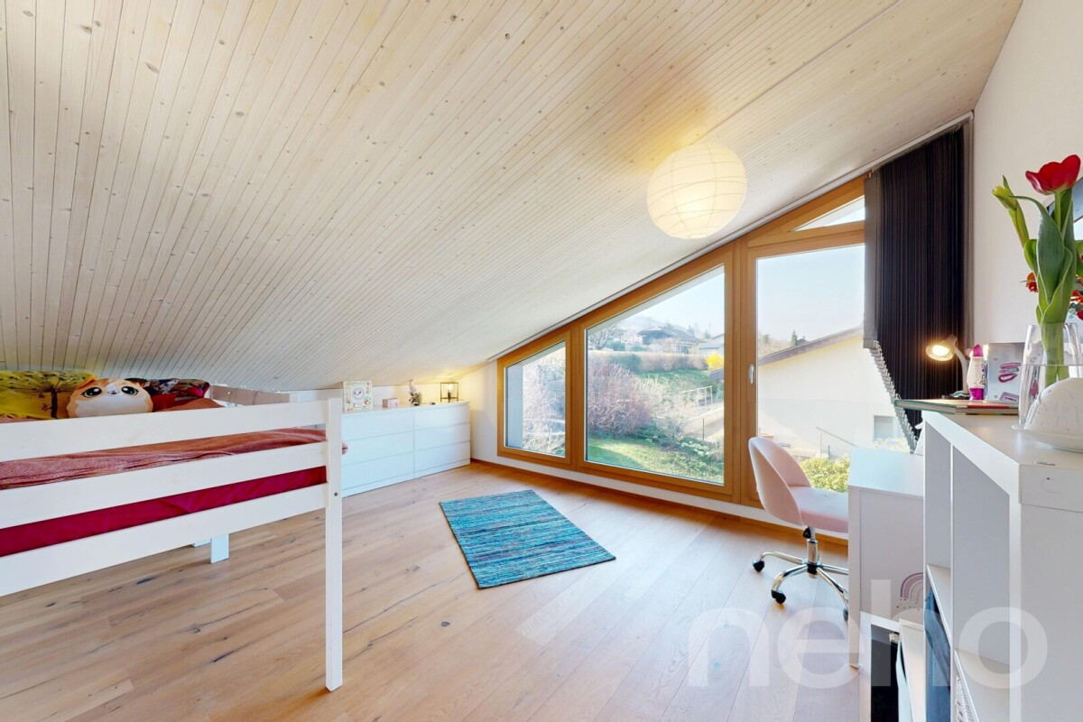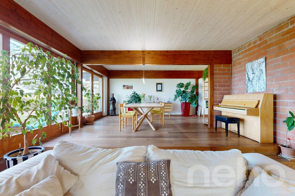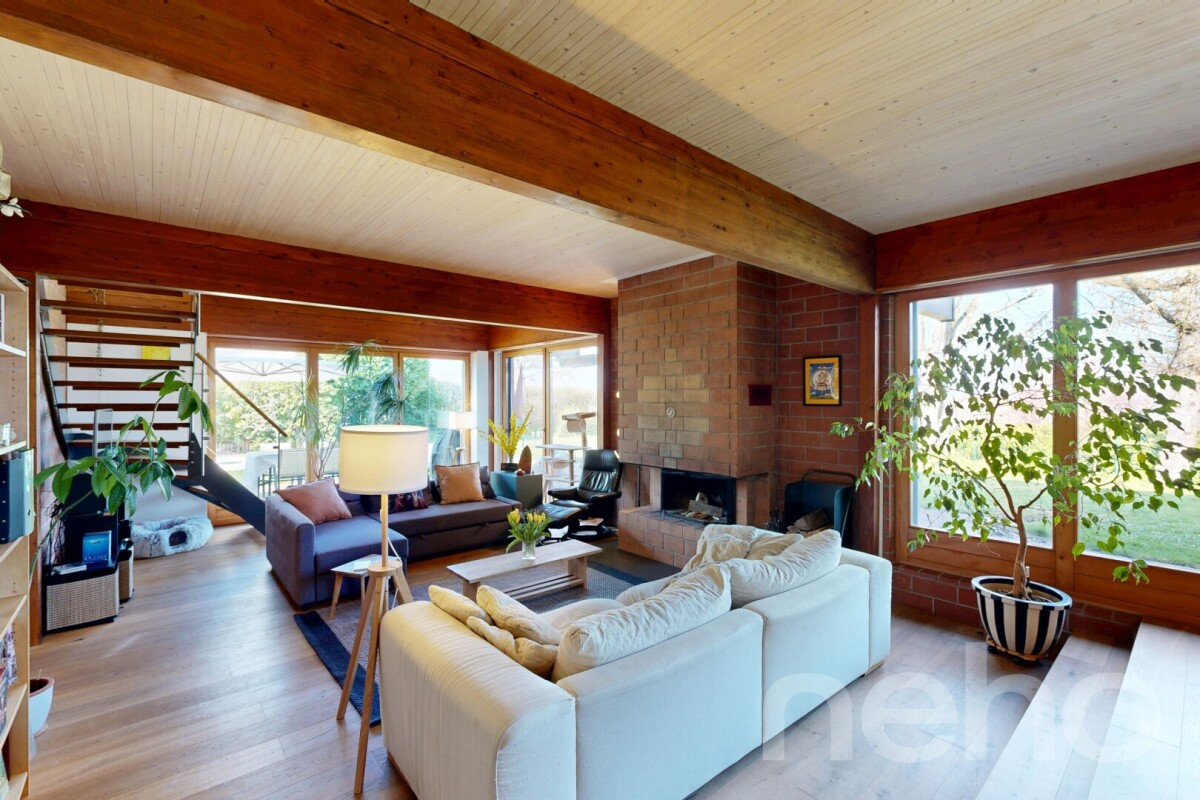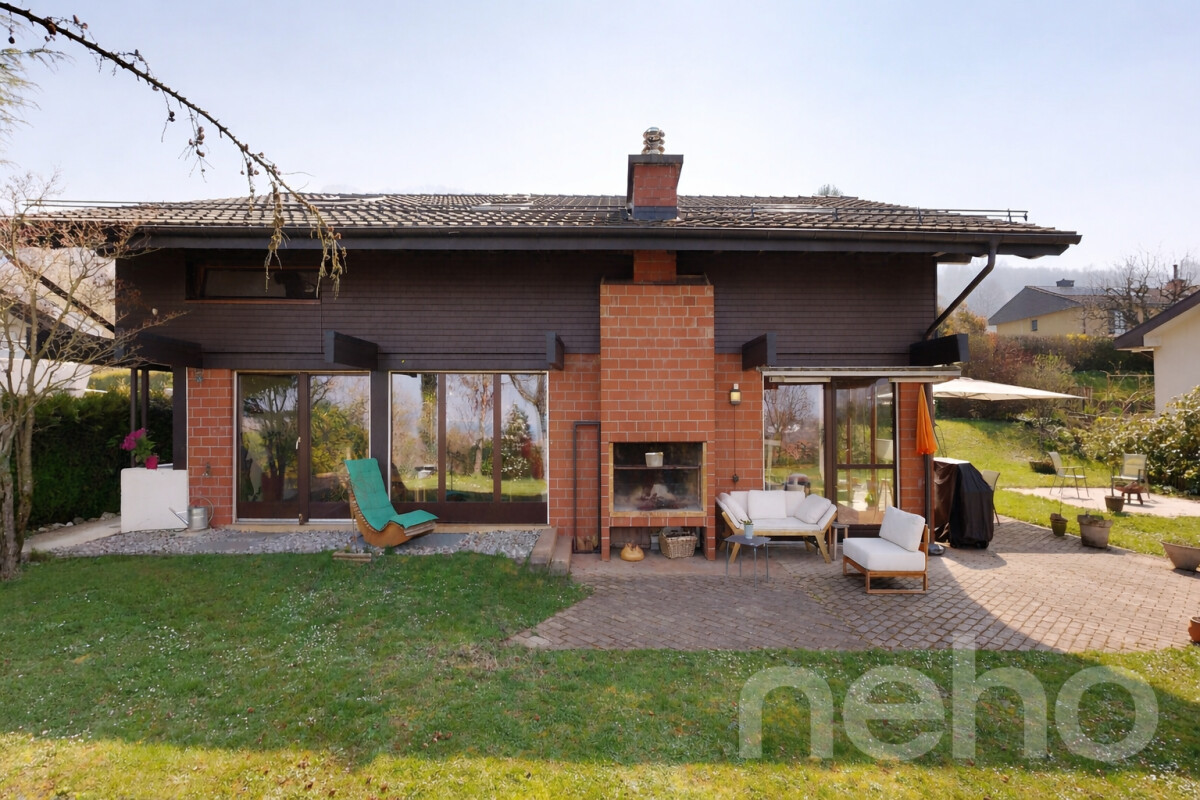 Découvrez cette maison d'architecte de 1978, d'inspiration mid-century, entièrement rénovée en 2016 avec des prestations actuelles et des performances énergétiques en ligne avec les standards modernes. Un bien rare, où le cachet d'origine a été sublimé par une rénovation de qualité.Dès l'entrée, la maison impressionne par sa magnifique hauteur sous plafond et ses volumes ouverts baignés de lumière. Le séjour, généreux et chaleureux, s'ouvre sur une salle à manger conviviale et s'organise autour d'une cheminée à double foyer, intérieur et extérieur. Elle crée une atmosphère cosy en hiver côté salon, et prolonge les soirées et barbecue d'été en terrasse dans une ambiance unique.Les larges baies vitrées cadrent une vue panoramique sur le lac de Neuchâtel, sans vis-à-vis, dans un calme absolu. Une véritable sensation d'évasion au quotidien. A l'étage, de grandes ouvertures et velux permettent de profiter d'une superbe lumière naturelle.La distribution est fluide et fonctionnelle, avec de beaux espaces de vie, plusieurs chambres confortables et des pièces annexes pratiques (bureau en mezzanine, dressing, mais aussi atelier insonorisé, idéal pour faire du bricolage ou de la musique, et buanderie au sous-sol). Chaque niveau a été pensé pour offrir à la fois intimité et convivialité.Implantée sur une parcelle de plus de 1'200 m², la propriété bénéficie d'un magnifique jardin arboré, véritable écrin de verdure. On y découvre de nombreux arbres fruitiers et essences décoratives (kakis, cerisier, figuier, pommier, mirabellier, fruits rouges?), ainsi qu'un jardin potager, offrant une récolte généreuse et une explosion de couleurs de mars à octobre.Côté performance énergétique, la maison est équipée de tuiles solaires, d'une pompe à chaleur air-eau et d'une excellente enveloppe thermique.Entre architecture, nature et vue exceptionnelle, cette propriété singulière séduira une clientèle en quête d'un lieu de vie unique, alliant esthétisme, confort et sérénité.