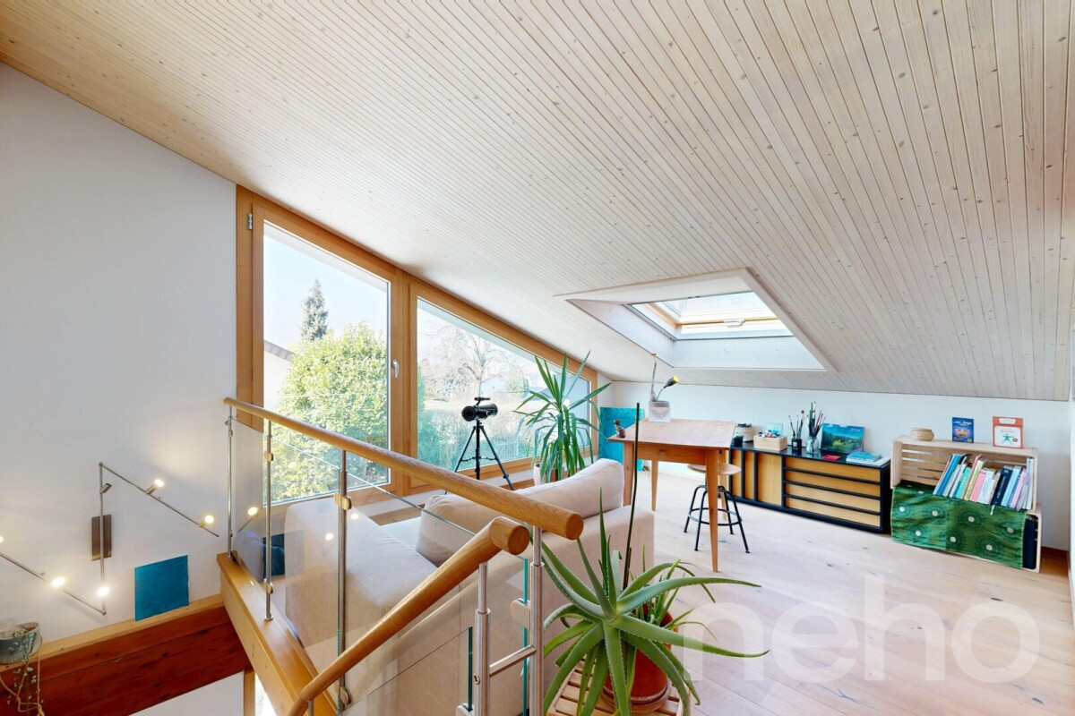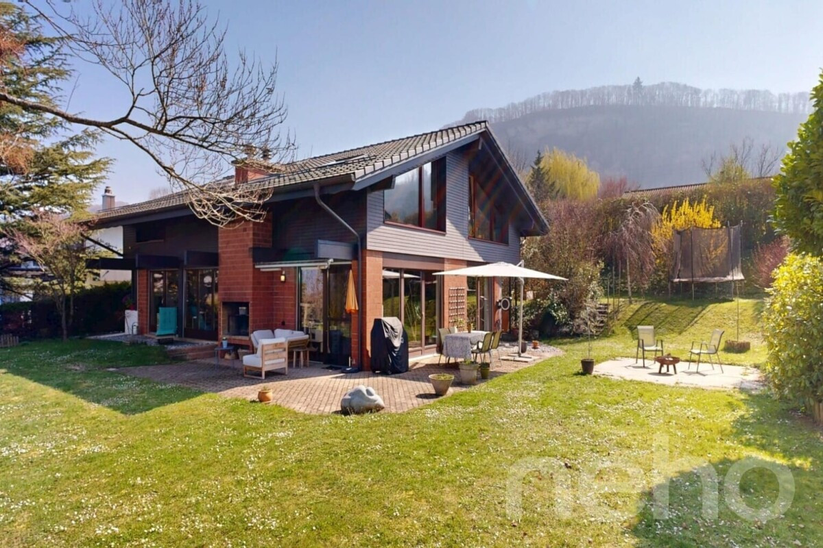 VestaSWISS Immobilier vous présente : Cette villa individuelle élégante séduit par l’ouverture de ses espaces de vie lumineux et par ses hauts volumes. La maison développe environ 220 m² habitables, répartis sur différents demi-niveaux, et propose une organisation qui met en valeur ses 7,5 pièces ainsi qu’un vaste sous-sol. Les espaces de vie, ouverts et agréables, comprennent un...