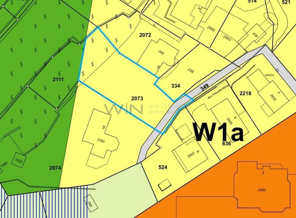 + FAKTEN: Zone W1a, Grenzabstand klein/gross: 4.0/8.0, First-Höhe max.: 9.0, erschlossen