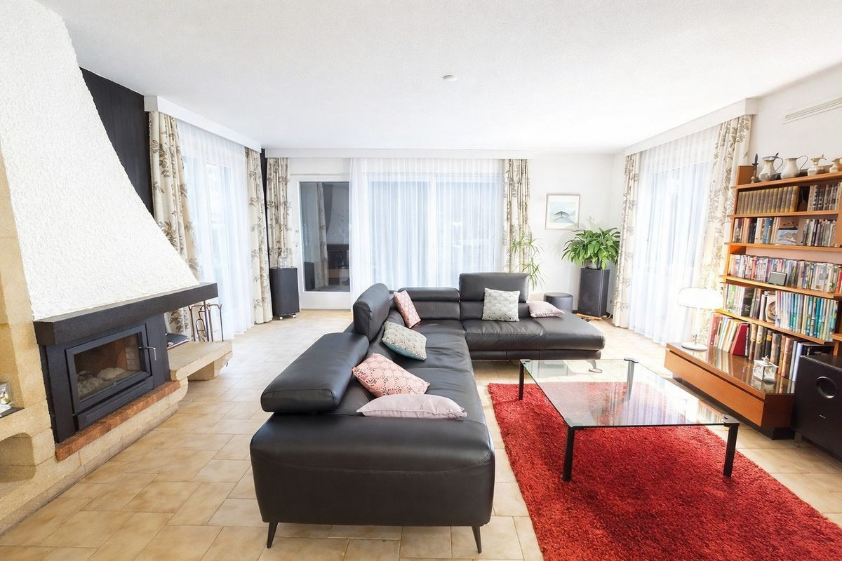 Le rez-de-chaussée supérieur s'articule autour d'un spacieux séjour avec cheminée, baigné de lumière et bénéficiant d'un accès direct à la terrasse afin de savourer pleinement le panorama. La cuisine, généreuse et parfaitement agencée, s'ouvre harmonieusement sur l'espace salon, créant une atmosphère conviviale et chaleureuse. Ce niveau comprend également quatre chambres, une salle de bains avec douche, une seconde salle de bains équipée d'une baignoire ainsi qu'un WC visiteurs.