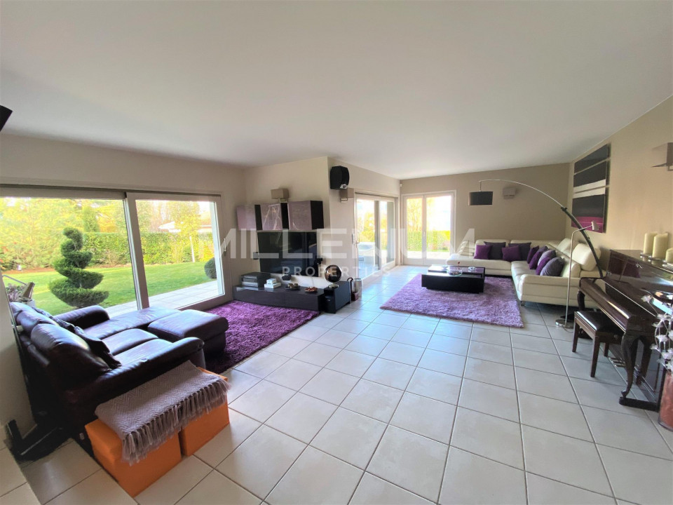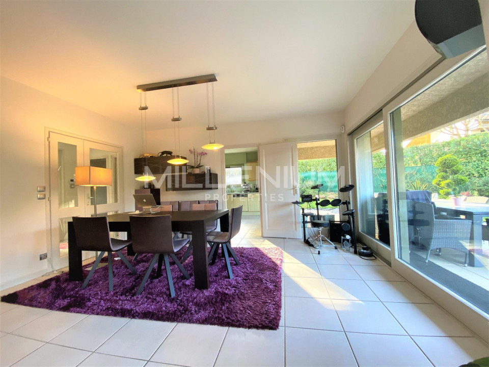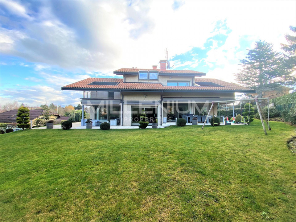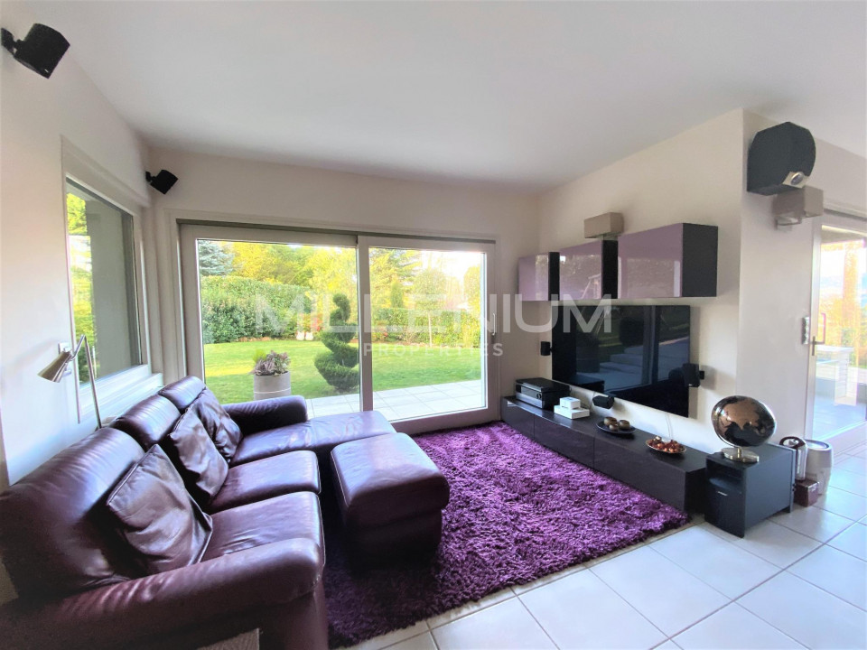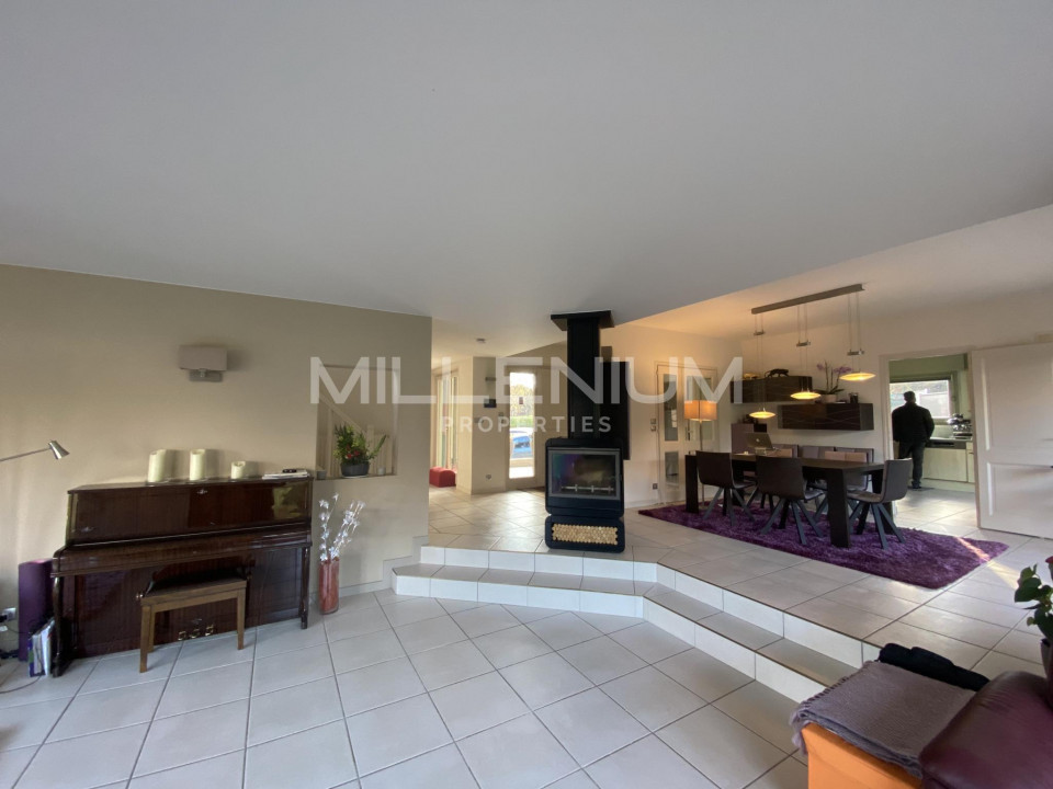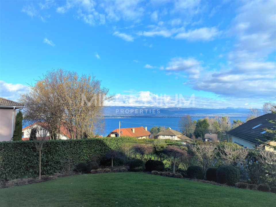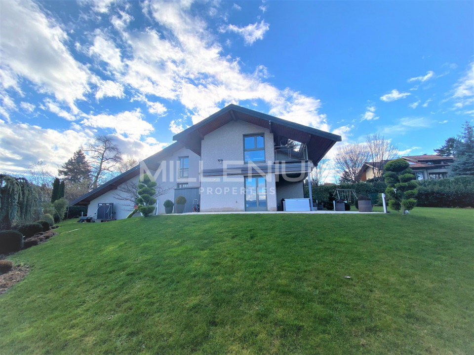 Située à Chens sur Leman (500 mètres de la douane D'Hermance) au calme et sur un terrain clos de 1501 m², cette villa de 228 m² bénéficie d'une magnifique vue sur le lac Léman.