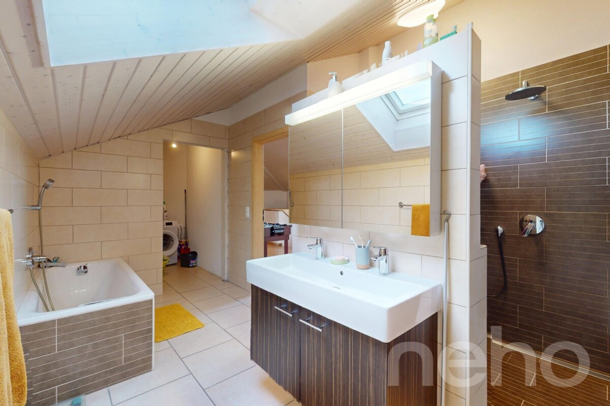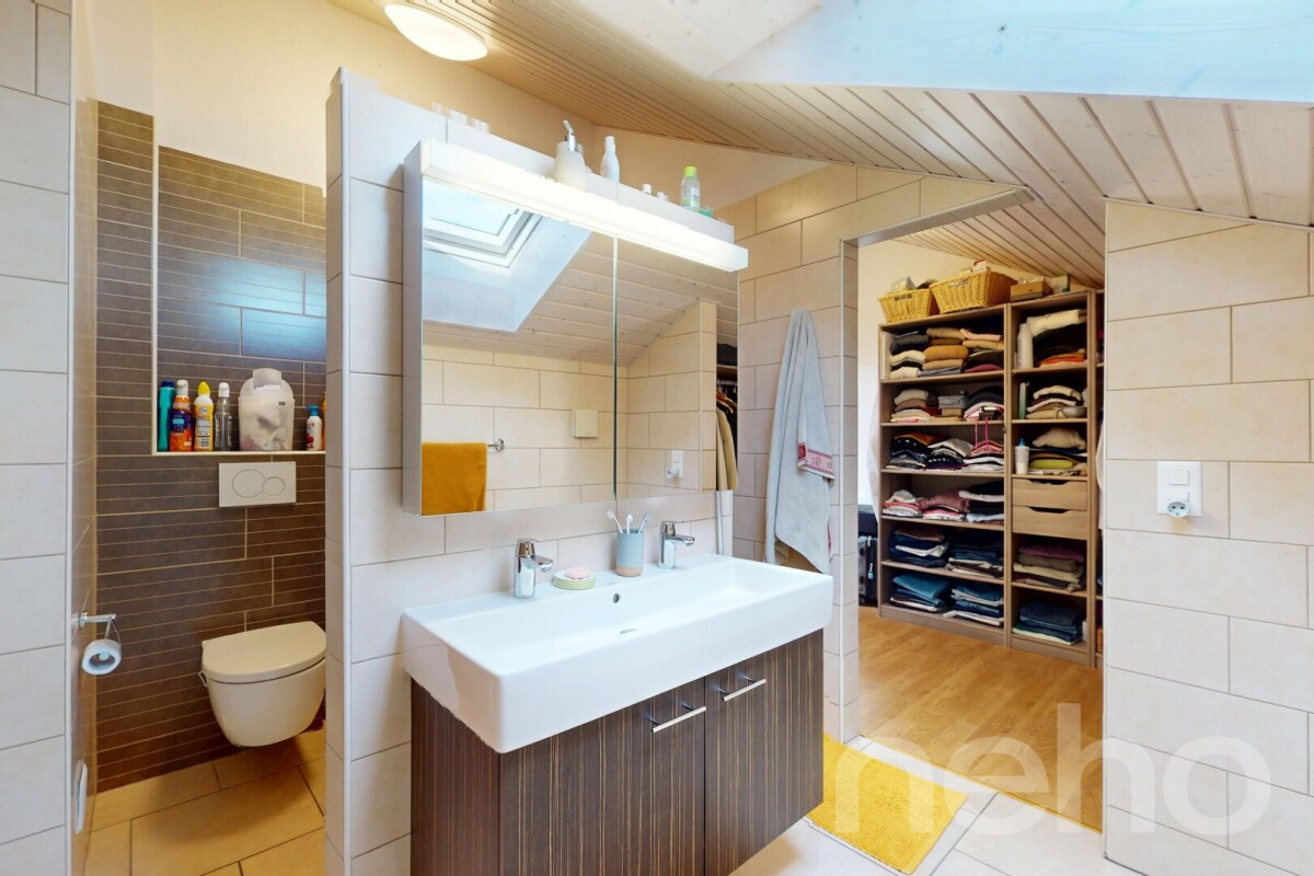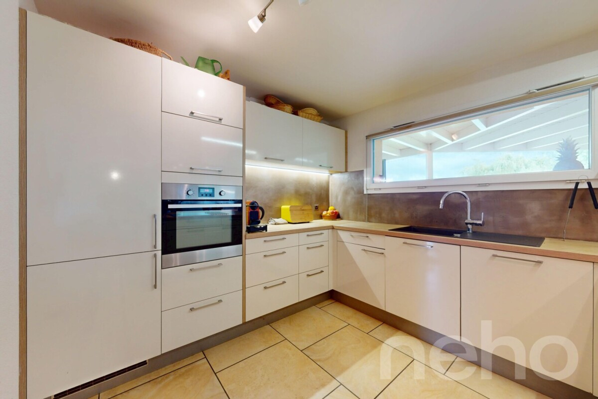 Idéalement située à proximité des écoles, des transports publics et des grands axes autoroutiers, la villa conjugue confort quotidien et accessibilité. Composée de 5,5 pièces, elle propose quatre chambres spacieuses dont une suite parentale, deux salles de bains contemporaines ainsi que deux toilettes visiteurs.