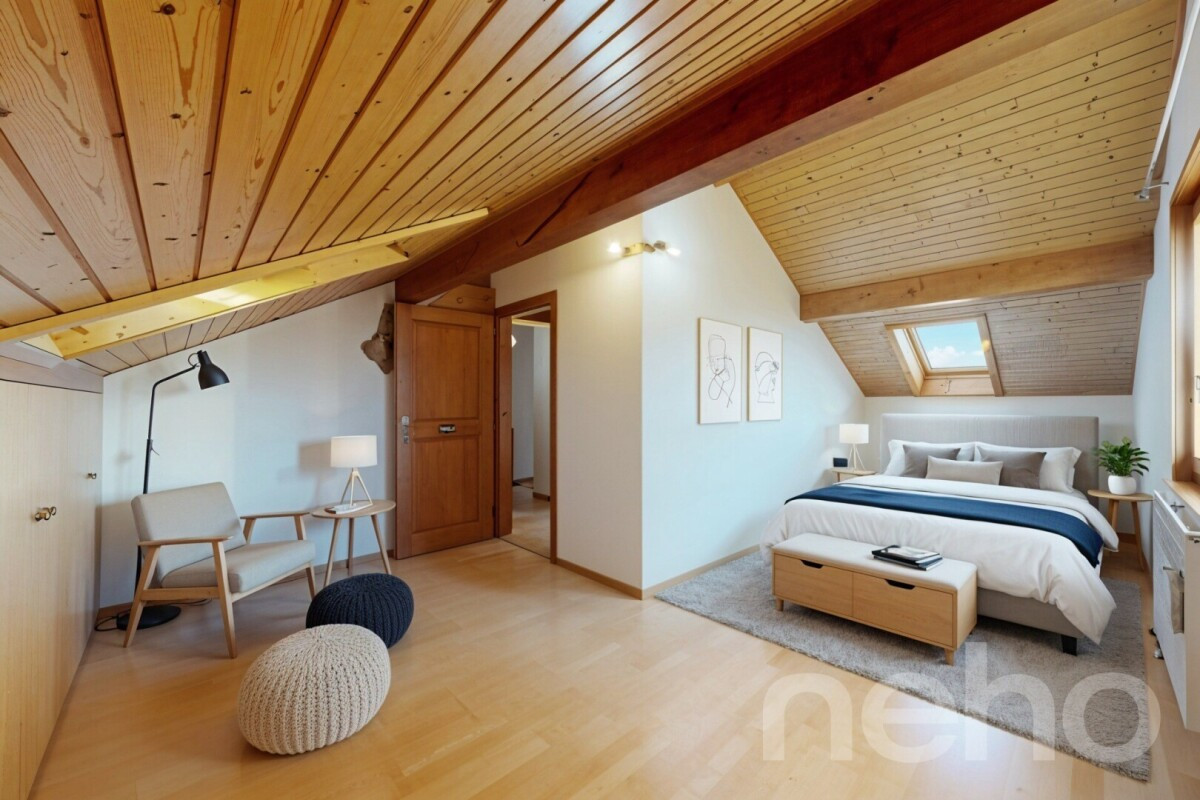 Nichée dans un environnement privilégié, au bout d'une route sans issue, cette belle villa individuelle séduit dès les premiers instants par sa vue dégagée sur les Alpes et le lac, offrant un panorama rare et apaisant, sans aucun vis-à-vis.Baignée de lumière tout au long de la journée, la maison bénéficie de belles hauteurs sous plafond qui renforcent la sensation d'espace et de bien-être. Les volumes ont été intelligemment optimisés, proposant une distribution fluide et fonctionnelle, idéale pour une vie de famille confortable ou pour recevoir en toute convivialité.Les espaces de vie s'ouvrent harmonieusement vers l'extérieur, invitant à profiter pleinement de la jolie parcelle de 716 m², soigneusement aménagée. La terrasse avec pergola constitue un véritable prolongement de la maison, parfaite pour les repas d'été ou les moments de détente face au paysage. Un jardin potager ravira les amateurs de nature et d'autonomie, ajoutant une touche authentique et durable à l'ensemble.En complément, un charmant carnotzet apporte un espace convivial supplémentaire, idéal pour partager de chaleureux moments entre amis ou en famille, en toute saison.Alliant situation idéale, tranquillité, luminosité et qualité de vie, cette villa représente une opportunité rare pour celles et ceux qui recherchent un cadre de vie privilégié, entre nature, confort et panorama d'exception. Une adresse où il fait bon vivre, à découvrir sans tarder.
