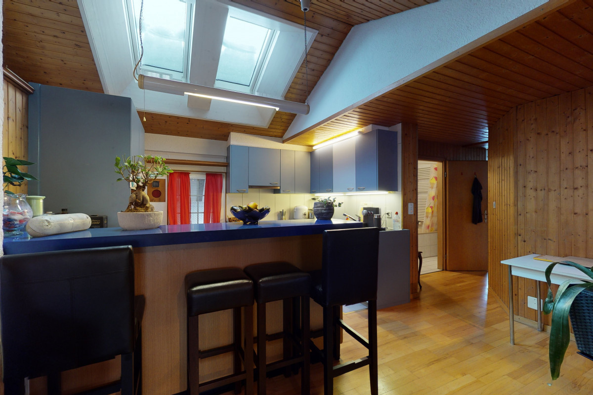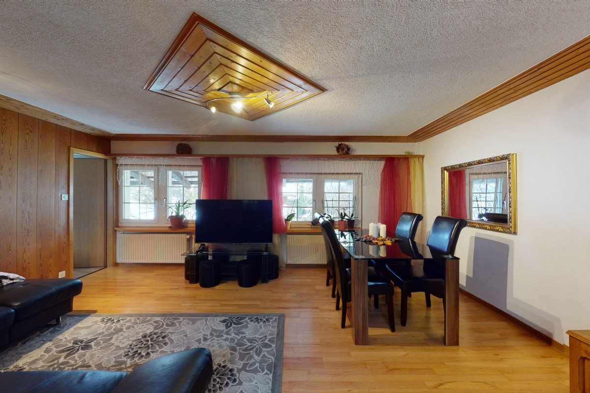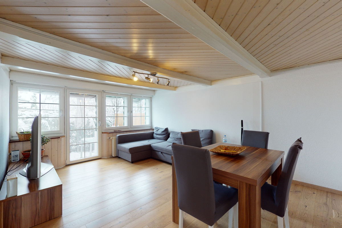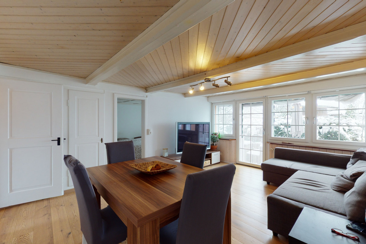 Dieses historische, nicht unter Denkmalschutz stehende Haus wurde 1984-1986 saniert. Dieses einseitig angebaute Einfamilienhaus ist in 2 Wohnungen aufgeteilt, eine 2.5 Zimmer Wohnung im Erdgeschoss mit Gartensitzplatz und einer 3.5 Zimmer im 1. OG. Die Wohnungen können auch zusammengelegt werden. Daher kann dieses Objekt gut als Renditeobjekt oder als Einfamilienhaus genutzt werden. Schulen und der ÖV befinden sich in unmittelbarer Nähe, Einkaufsmöglichkeiten stehen ausreichend zur Verfügung.