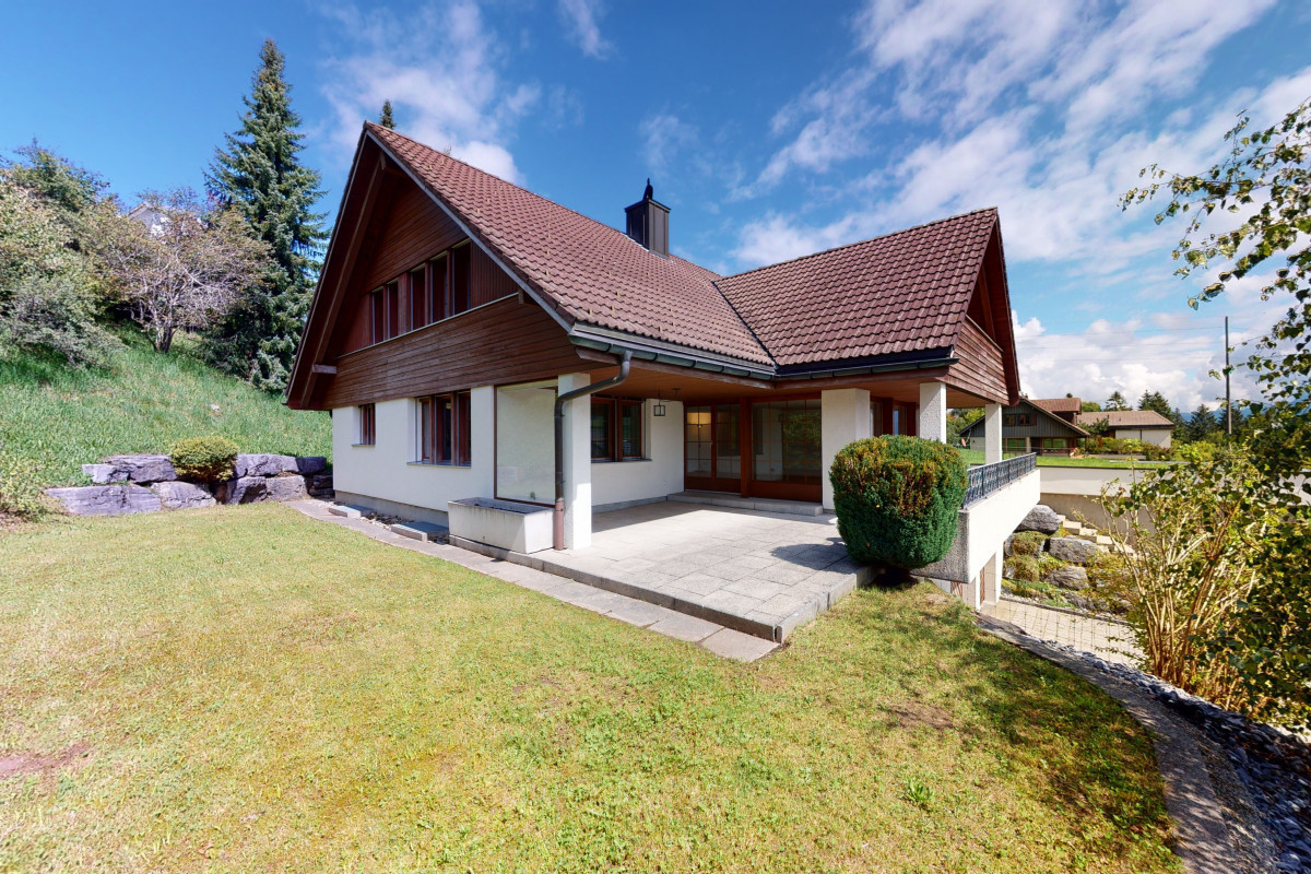 Cette propriété de rêve vous offre de l'espace pour vivre, vous sentir bien et de l'intimité en même temps. La propriété est idéale pour les familles et s'étend sur 3 étages avec 3 salles de bain et une grande cuisine ouverte. L'espace généreux et privé du jardin offre beaucoup d'espace pour célébrer des fêtes et se détendre. La maison individuelle est située sur une pente tranquille, surélevée et orientée au sud, et offre une belle vue sur Einsiedeln et les montagnes.