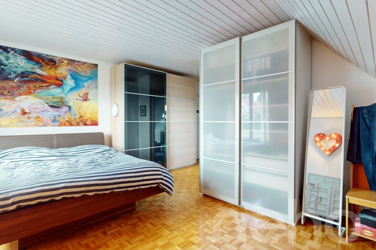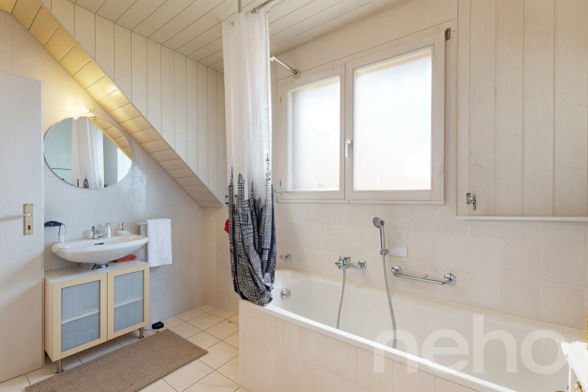 La pièce de vie principale s'ouvre sur un séjour chaleureux avec poêle, prolongé par un espace salle à manger et une cuisine ouverte. De là, on accède directement à une terrasse latérale, tandis que la terrasse principale profite d'un ensoleillement optimal et donne sur un jardin clôturé, agréable et soigneusement entretenu. Une chambre et un WC séparé complètent ce niveau. L'étage supérieur abrite trois chambres accompagnées de deux salles d'eau, et les combles aménagés, offrent quant à eux un espace supplémentaire polyvalent. Le vaste sous-sol met à disposition de nombreuses surfaces pratiques selon vos besoins. Un garage-box individuel ainsi qu'une place de parc extérieure viennent parfaire ce bien.