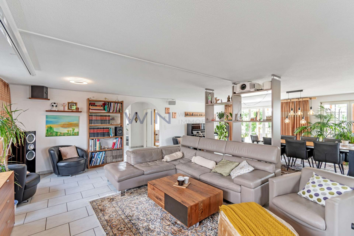 5.5-Zi.-Einfamilienhaus mit Garten, Teich & vielseitigen OptionenWillkommen in Ihrem neuen Zuhause! Dieses freistehende Einfamilienhaus aus dem Jahr 1973 vereint den Charme vergangener Jahrzehnte mit modernem Wohnkomfort. Eingebettet in einen gepflegten Garten mit idyllischem Teich, bietet die Liegenschaft reichlich Platz für Familie, Hobby und Gäste und dank eines grosszügigen, ausbaufähigen Bereichs...