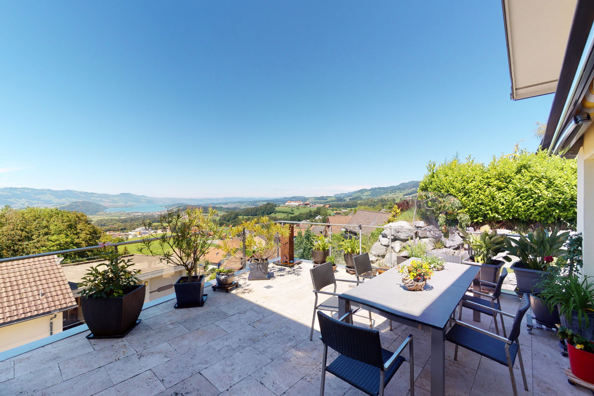 Dieses tolle Haus besticht durch seine Grösse und dem exklusiven Innenausbau. Zwei Terrassen mit gesamt über 100m² und der grosse Garten laden zum verweilen im Freien ein und lässt Sie diese unverbaubare Aussicht geniessen. Nach einem Bad im grossen Schwimmteich und einem Saunagang können Sie die Seele baumeln lassen. Der über 100m² grosse Wohn-/Essbereich mit bis 5m hohe Decken bietet eine exzellente Akustik und Platz für individuelle Raumgestaltung. Kontaktaufnahme unter: 055 284 10 62.