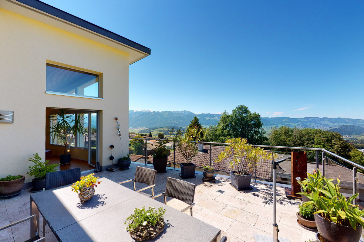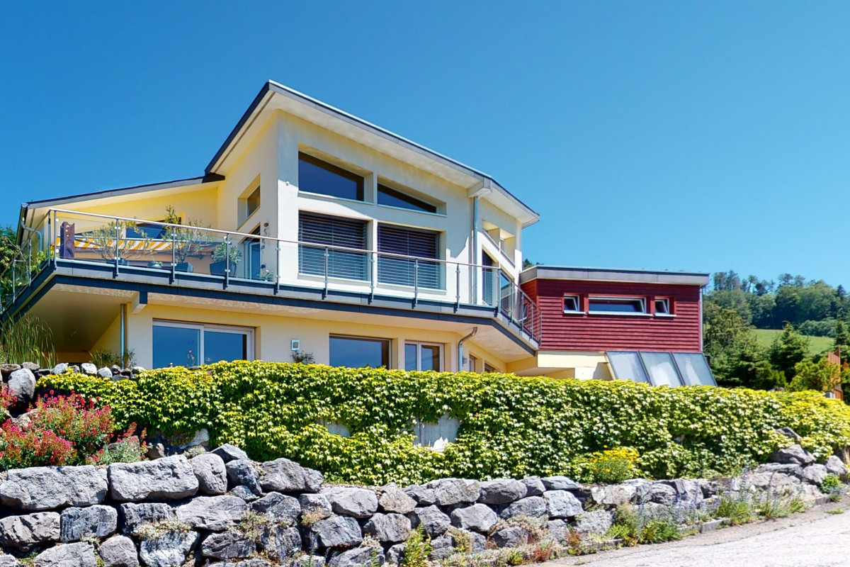 Exklusives Architektenhaus, optimale Berg-Seesicht und Schwimmteich