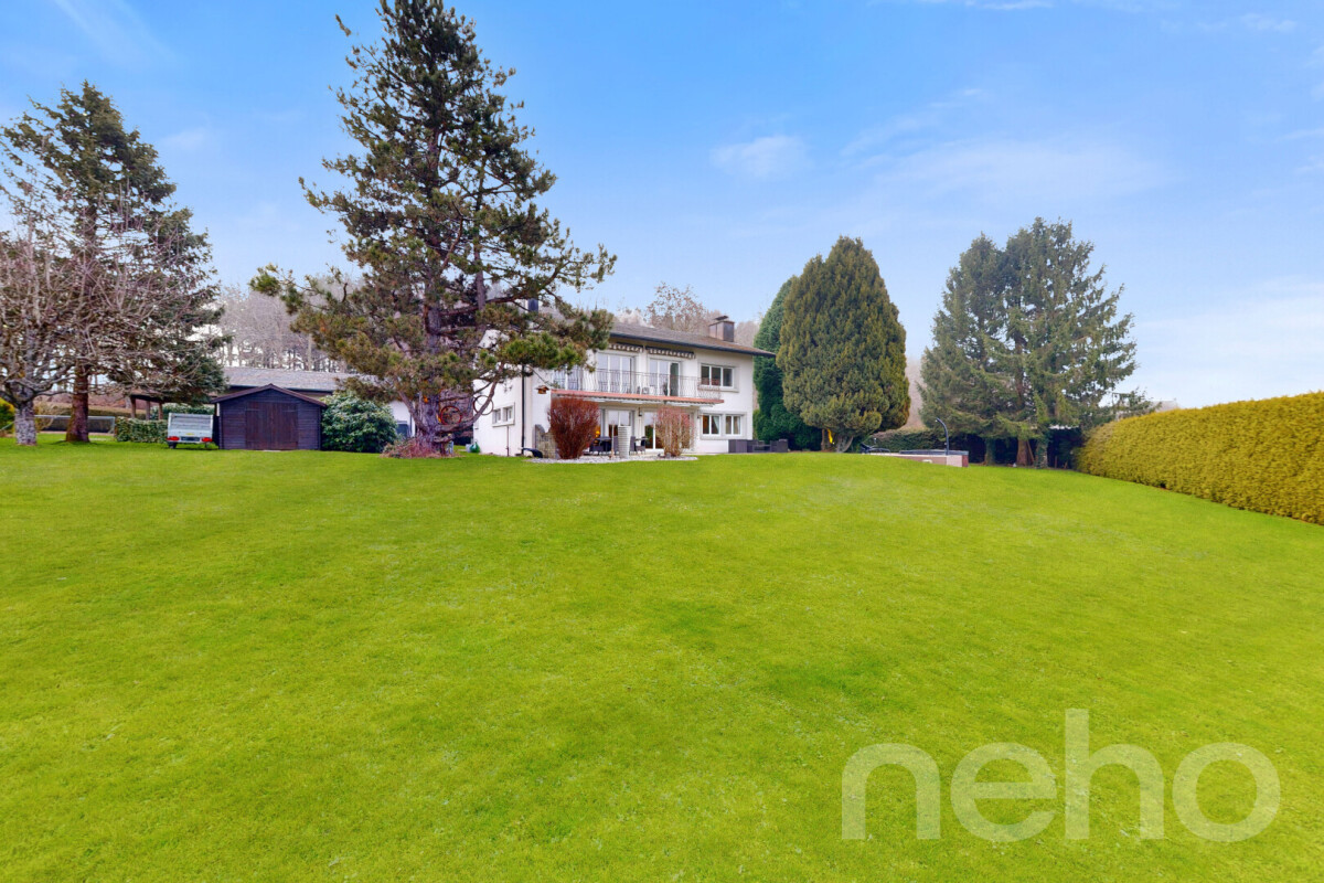 Érigée sur une superbe parcelle paysagée de 3'091 m², cette propriété familiale séduit par ses volumes généreux, sa luminosité et son environnement verdoyant préservé.