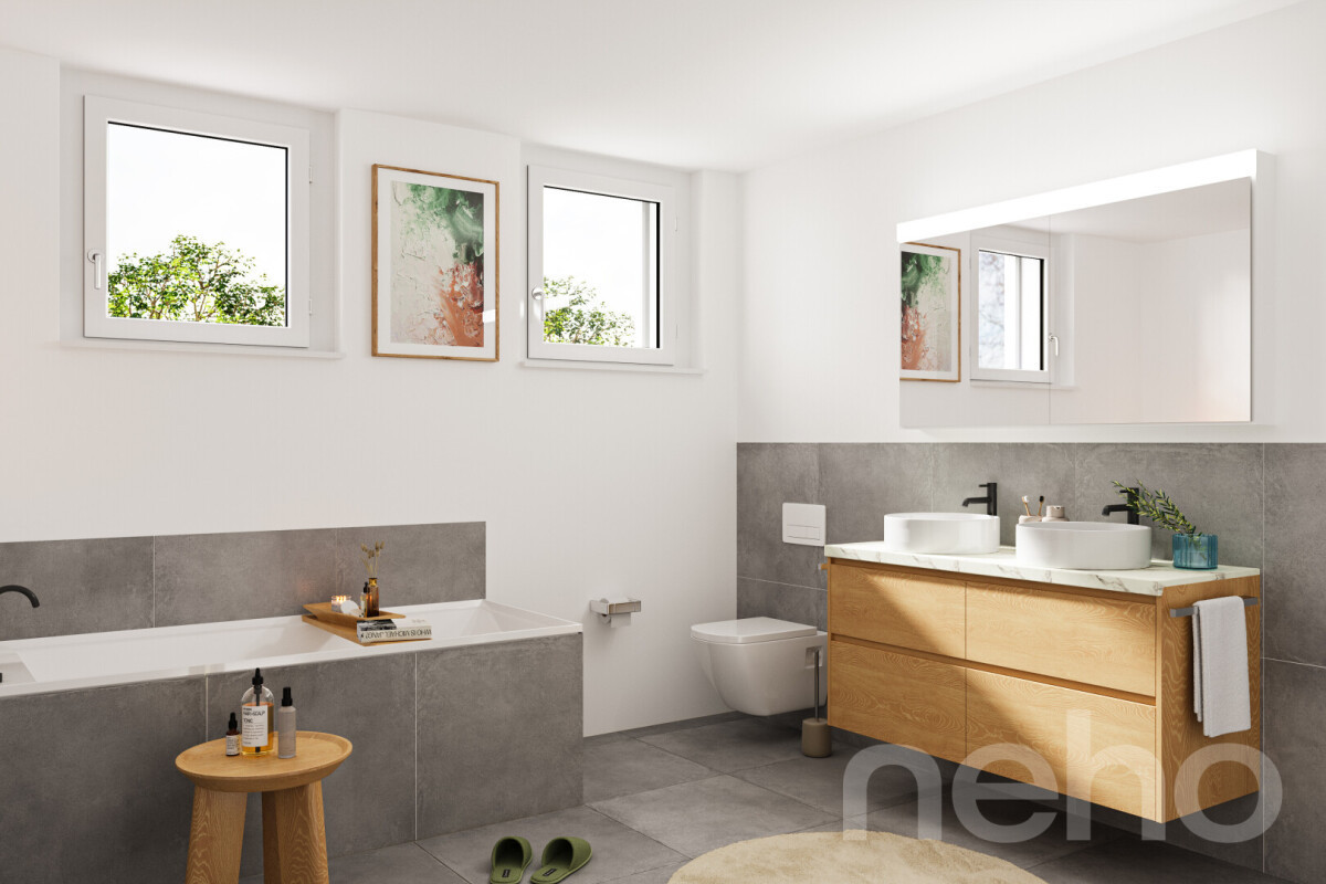 An leicht erhöhter Lage in Kriens entsteht ein stilvolles Doppelhaus, das moderne Architektur, Wohlfühlatmosphäre und eine beeindruckende Fernsicht harmonisch miteinander verbindet. Die zeitlose Gestaltung fügt sich sensibel in das ruhige Wohnquartier ein und setzt zugleich einen modernen Akzent. Jede Haushälfte bietet rund 188 m² Wohnfläche auf vier Etagen und ist ein Ort, an dem Wohnen, Arbeiten und Entspannen nahtlos ineinander übergehen.