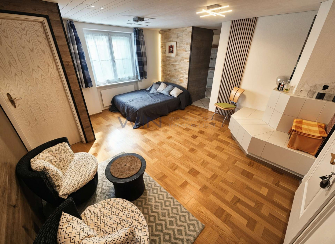 Dieses charmante Holzhaus bietet ein warmes und einladendes Zuhause für die ganze Familie. Die hellen Räume sorgen für eine freundliche Wohnatmosphäre und lassen viel Raum für individuelles Einrichten. Eine gemütliche Veranda lädt zum Verweilen ein und erweitert den Wohnraum nach draussen. Für erholsame Stunden steht eine moderne Infrarotsauna zur Verfügung, während die kleine Werkstatt Platz...