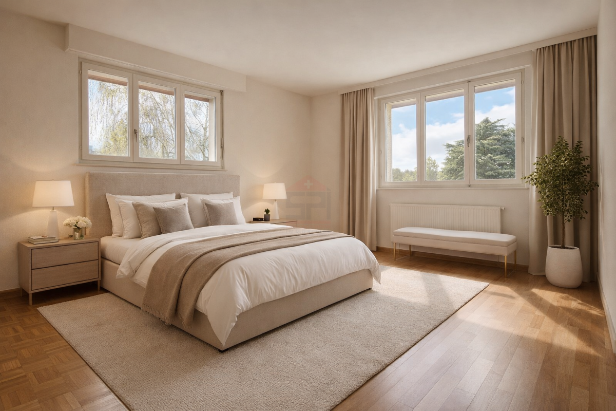 Dans un environnement résidentiel prisé de Cointrin, à quelques minutes seulement de Genève, cette propriété individuelle séduit par ses volumes généreux, sa luminosité et son cadre verdoyant, à l'abri des regards.