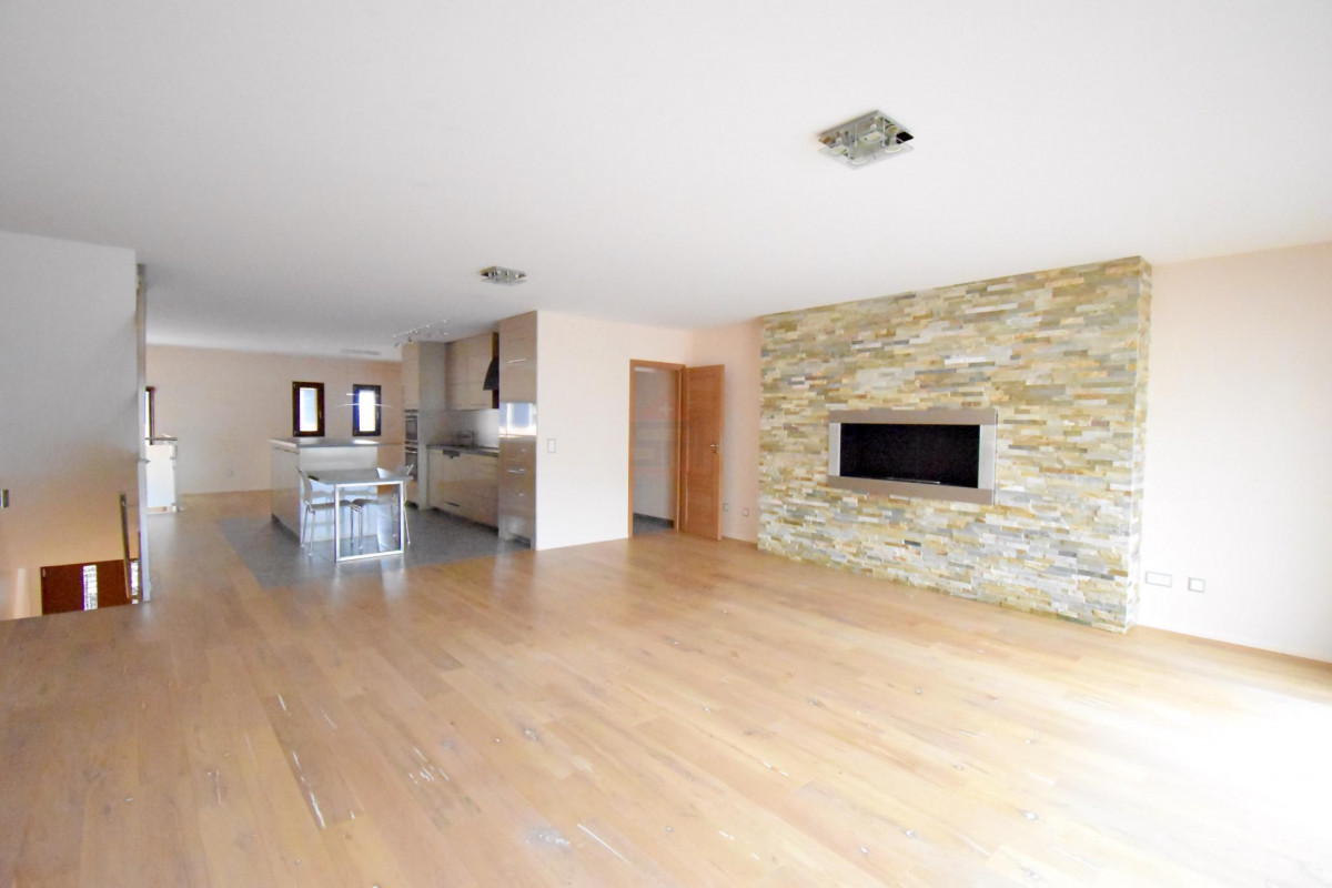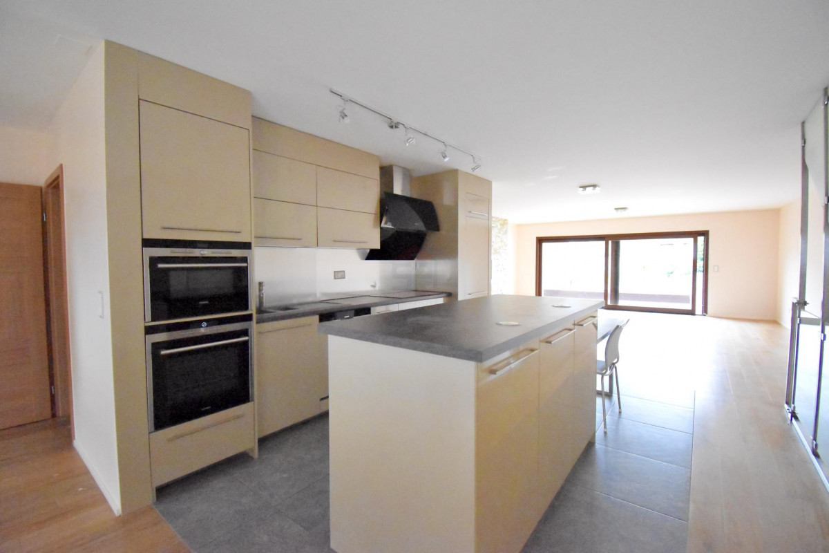 Confort moderne : grand séjour avec cheminée à l'éthanol et cuisine équipée