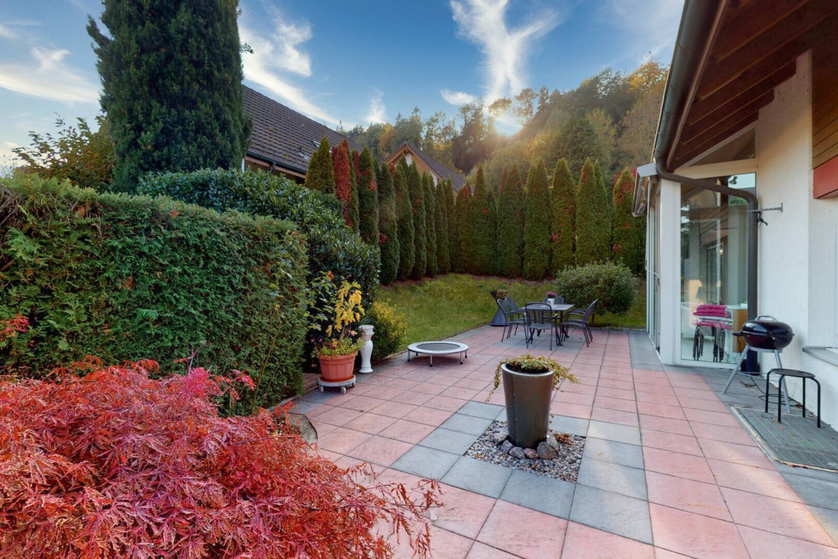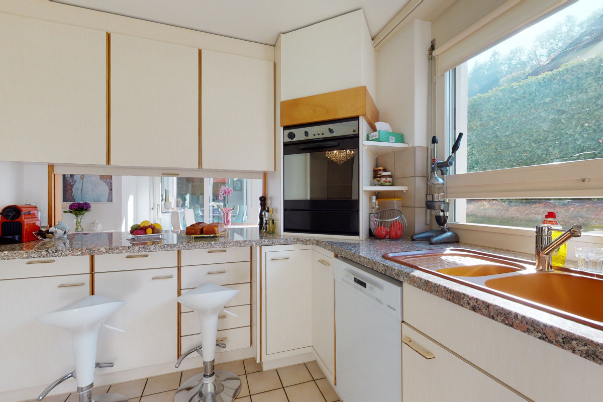 Lichtdurchflutetes Zuhause mit Galerie, Schwedenofen und GartenidylleDieses einzigartige 5.5-Zimmerhaus in sonniger Hanglage bietet 174 m² Wohnfläche sowie 98 m² Terrasse und liegt an ruhiger Privatstrasse ohne Durchgangsverkehr ? direkt angrenzend an unverbaubares Schutzgebiet mit Wiese und Wald. Die grosszügige Gartenanlage ist naturnah gestaltet mit schattenspendenden Bäumen, Zierpflanzen,...